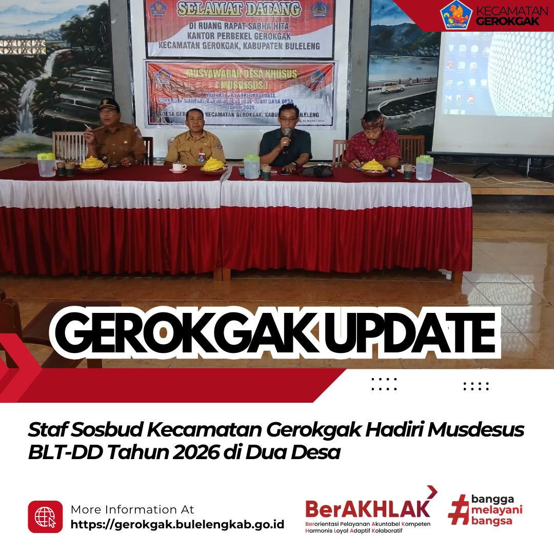 Gerokgak – Senin, 2 Maret 2026, Staf Seksi Sosial dan Budaya (Sosbud) Kecamatan Gerokgak menghadiri Musyawarah Desa Khusus (Musdesus) BLT Dana Desa (DD) Tahun 2026 di dua desa, yakni Desa Gerokgak dan Desa Musi.