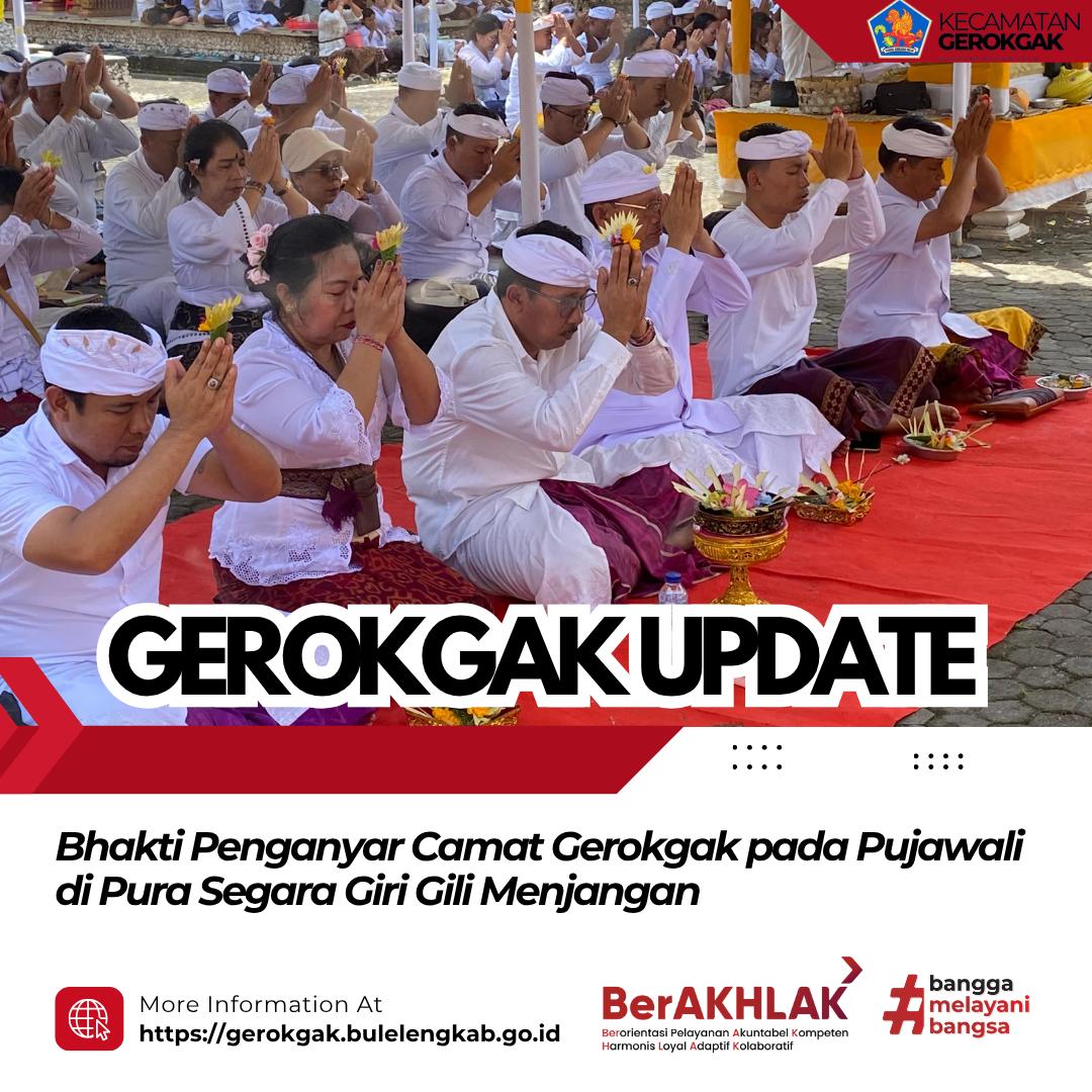 Kegiatan ini dihadiri langsung oleh Camat Gerokgak yang didampingi oleh Kepala Seksi Sosial Budaya, Kepala Seksi Pemerintahan, Kepala Subbagian Umum dan Keuangan, serta staf kecamatan. Persembahyangan berlangsung dengan khidmat sebagai bentuk sradha bhakti kepada Ida Sang Hyang Widhi Wasa serta dalam rangka menyukseskan rangkaian pujawali di Pura Segara Giri Gili Menjangan.