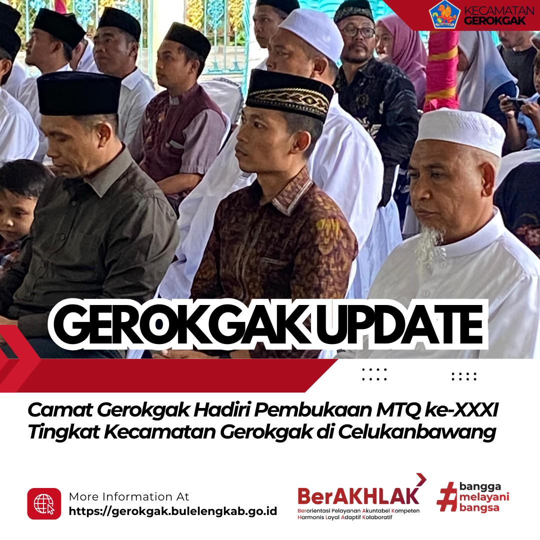 Acara pembukaan MTQ ke-XXXI Tingkat Kecamatan Gerokgak kemudian dibuka secara resmi oleh Camat Gerokgak, yang ditandai dengan pemukulan bedug dan rebana, serta diikuti oleh para tamu undangan.