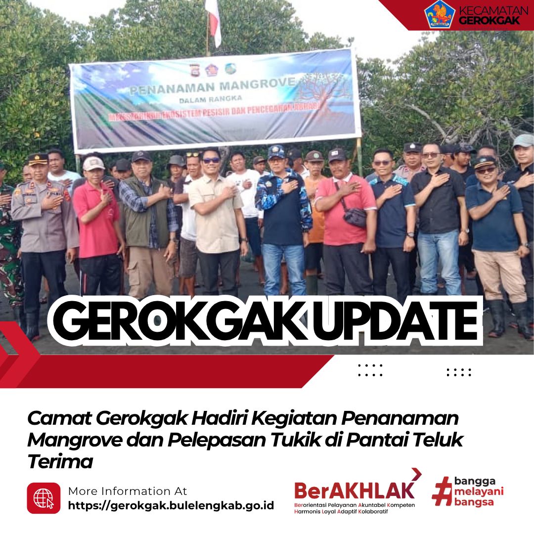 Gerokgak, 23 Oktober 2025 — Camat Gerokgak I Gd Arya Rimbawa Giri, S.IP., M.AP. menghadiri kegiatan penanaman pohon mangrove yang berlangsung di Pantai Teluk Terima, Desa Sumberklampok, pada Kamis (23/10).