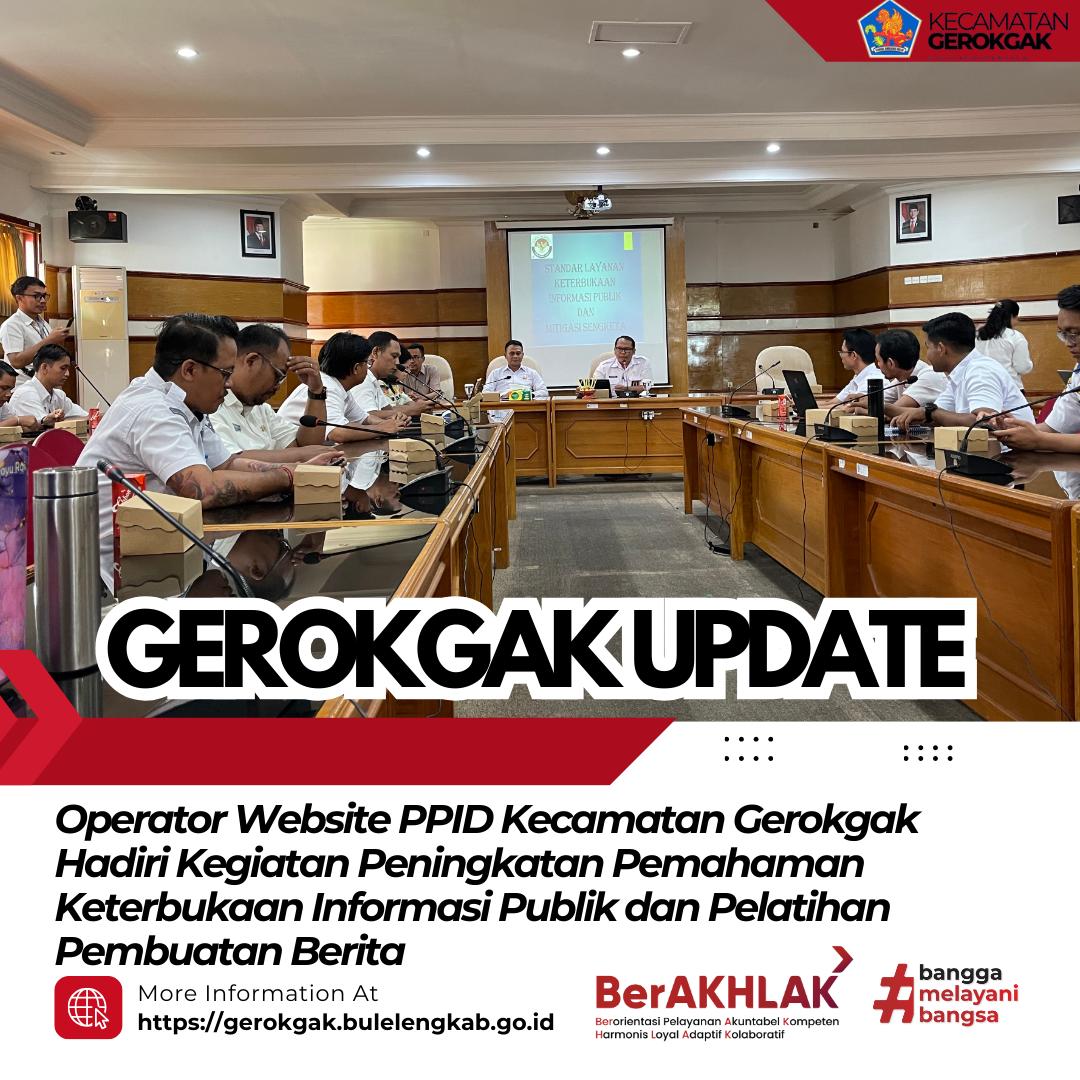 Singaraja, Rabu 10 Desember 2025 — Operator Website PPID Kecamatan Gerokgak menghadiri kegiatan Peningkatan Pemahaman dan Implementasi Keterbukaan Informasi Publik yang dirangkaikan dengan Pelatihan Pembuatan Berita dalam Penyampaian dan Pengelolaan Informasi Publik Secara Tepat, Transparan dan Akuntabel. Kegiatan ini diselenggarakan oleh Dinas Komunikasi, Informatika, Persandian dan Statistik Kabupaten Buleleng di Ruang Rapat Unit IV Kantor Bupati Buleleng, serta diikuti oleh perwakilan PPID dari seluruh badan publik di lingkungan Pemerintah Kabupaten Buleleng.