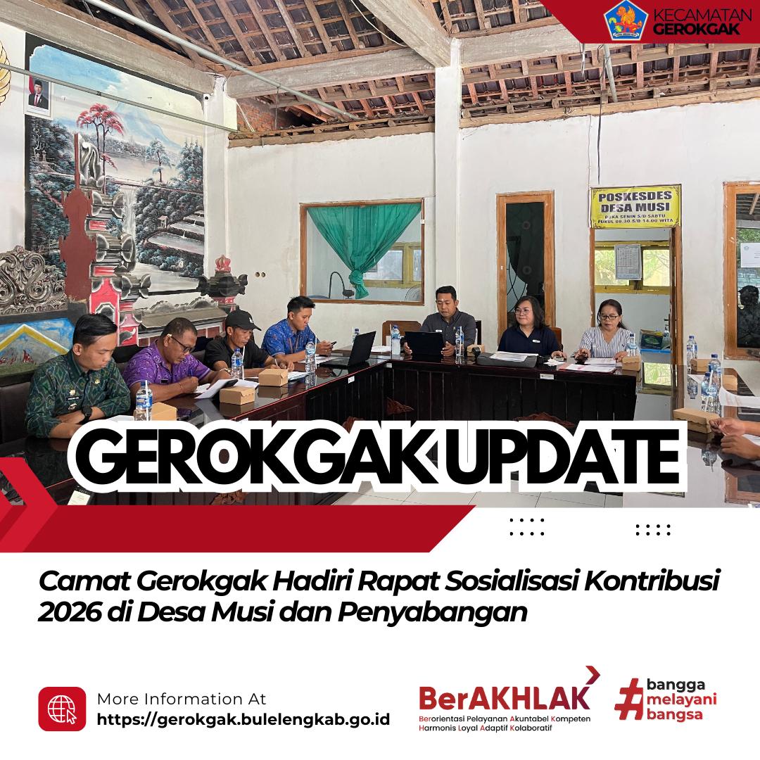 Gerokgak, 2 Desember 2025 — Camat Gerokgak, I Gd Arya Rimbawa Giri, S.IP., M.AP., menghadiri Rapat Sosialisasi Kontribusi Tahun 2026 yang digelar di Kantor Desa Musi dan Kantor Desa Penyabangan. Kegiatan ini menjadi wadah koordinasi bersama dalam penyampaian mekanisme kontribusi perusahaan kepada masyarakat, khususnya wilayah pesisir.