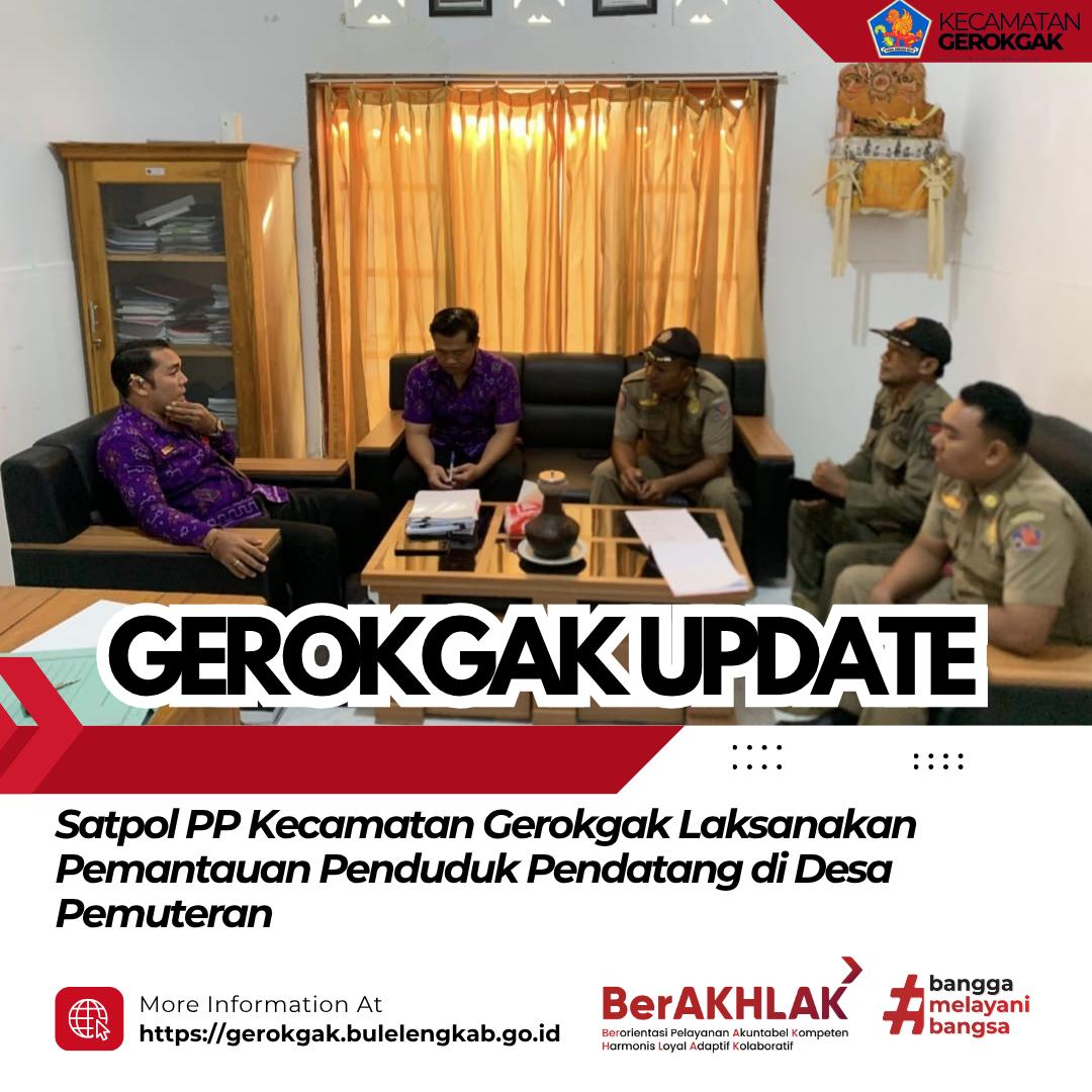 Gerokgak, 11 November 2025 — Satuan Polisi Pamong Praja (Satpol PP) Kecamatan Gerokgak melaksanakan kegiatan pemantauan dan pendataan penduduk pendatang (duktang) yang bertempat di Desa Pemuteran, pada Selasa (11/11).