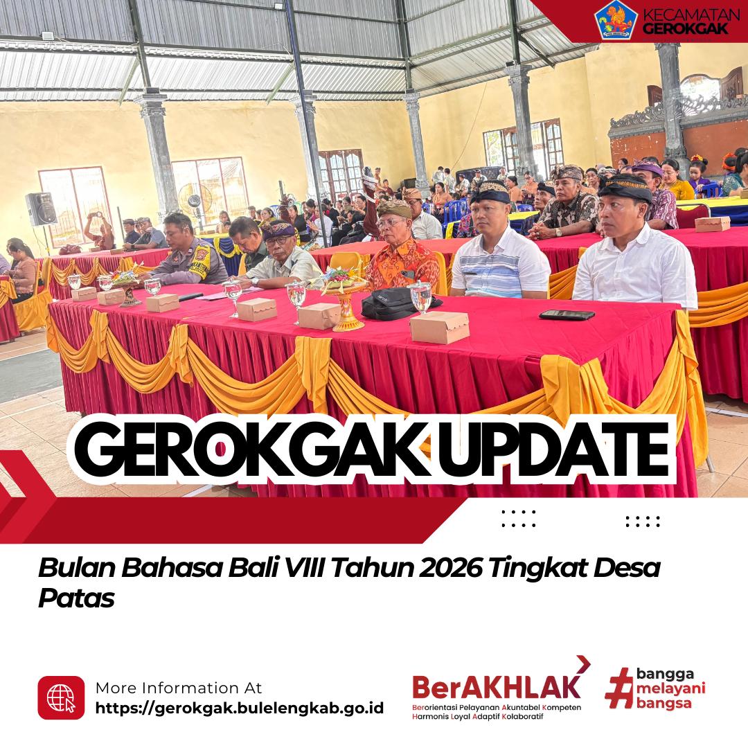 Patas, 25 Februari 2026 – Kasi Sosial dan Budaya Kecamatan Gerokgak menghadiri pelaksanaan kegiatan Bulan Bahasa Bali VIII Tahun 2026 Tingkat Desa yang digelar di GOR Amartha Desa Patas, Rabu (25/2). Kegiatan ini merupakan agenda ke-12 dari rangkaian Bulan Bahasa Bali yang telah dijadwalkan sebelumnya di tingkat desa se-Kecamatan Gerokgak.