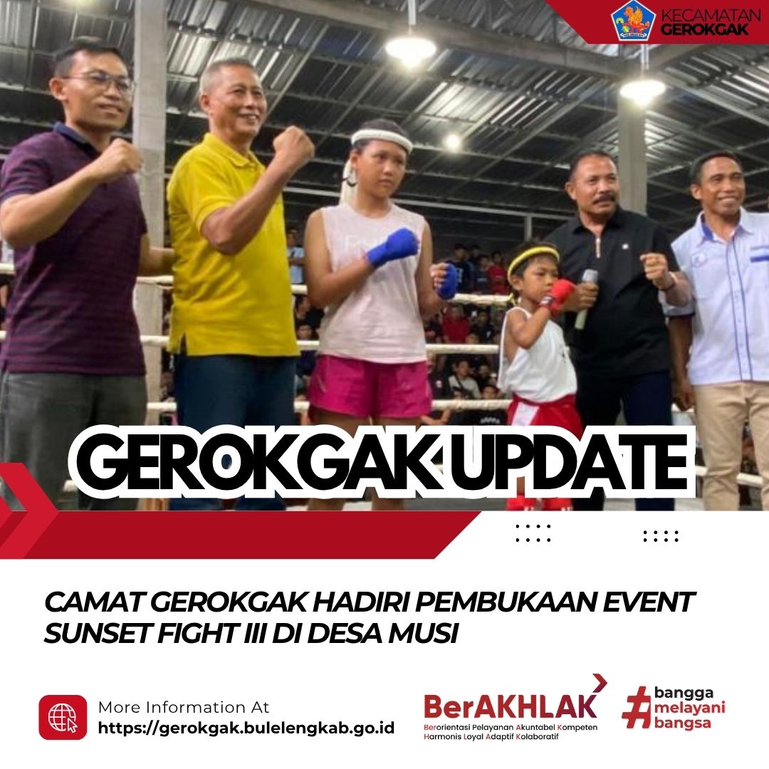 Gerokgak, 30 Oktober 2025 — Camat Gerokgak I Gd Arya Rimbawa Giri, S.IP., M.AP. menghadiri acara Event Sunset Fight III tahun 2025 berlangsung di Desa Musi, Kecamatan Gerokgak, pada Kamis (30/10).