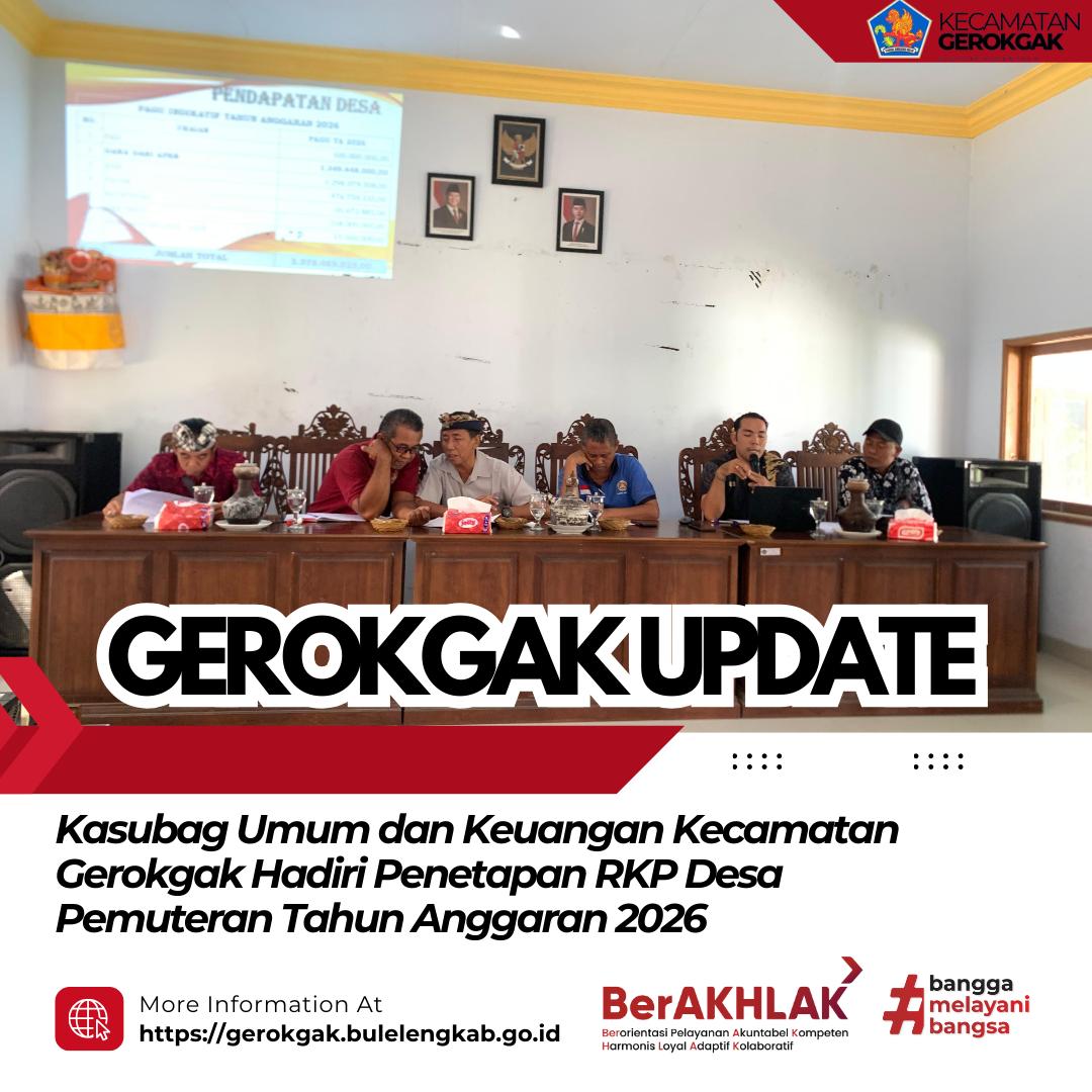 Gerokgak, 26 September 2025 – Kasubag Umum dan Keuangan Kecamatan Gerokgak, I Gusti Putu Mangkuyasa, menghadiri acara Pembahasan dan Penetapan Rencana Kerja Pemerintah Desa (RKP Desa) Tahun Anggaran 2026 di Desa Pemuteran.