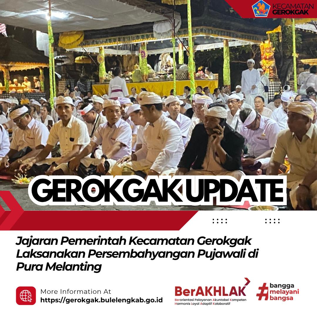 Gerokgak, 7 Oktober 2025 - Jajaran Pemerintah Kecamatan Gerokgak melaksanakan persembahyangan Pujawali di Pura Melanting, yang merupakan bagian dari rangkaian upacara Pujawali di Pura Agung Pulaki lan Pasanakan Ida. Kegiatan persembahyangan ini berlangsung dengan khidmat dan penuh rasa bhakti sebagai wujud sraddha bhakti umat kepada Ida Sang Hyang Widhi Wasa.