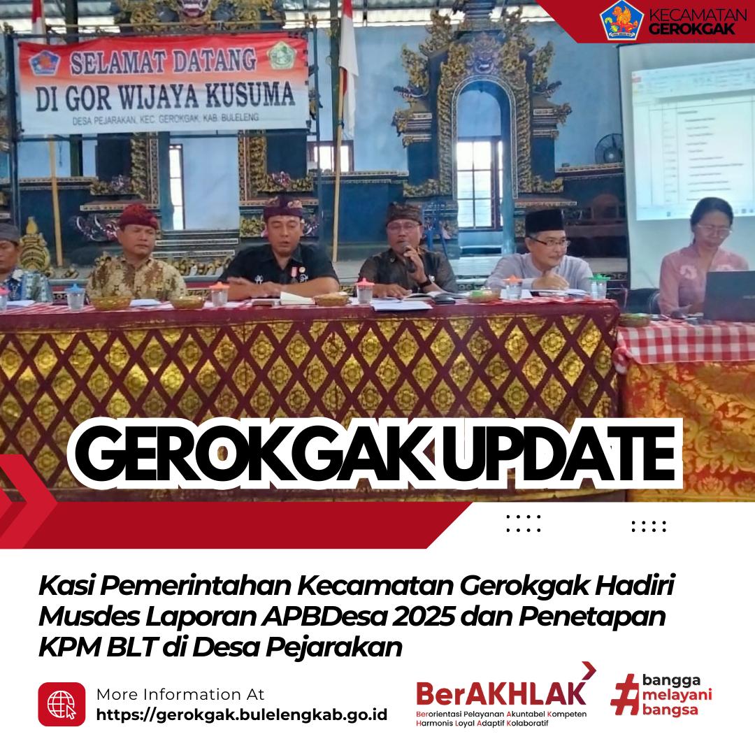 Pejarakan – Kepala Seksi Pemerintahan Kecamatan Gerokgak menghadiri kegiatan Musyawarah Desa (Musdes) penyampaian Laporan Pelaksanaan APBDesa dan Laporan Penyelenggaraan Pemerintahan Desa Tahun Anggaran 2025, laporan pertanggungjawaban BUMDes Desa Nugraha Tata Samaya, serta penetapan Keluarga Penerima Manfaat (KPM) BLT Tahun 2026 di Desa Pejarakan pada Kamis, 5 Maret 2026.