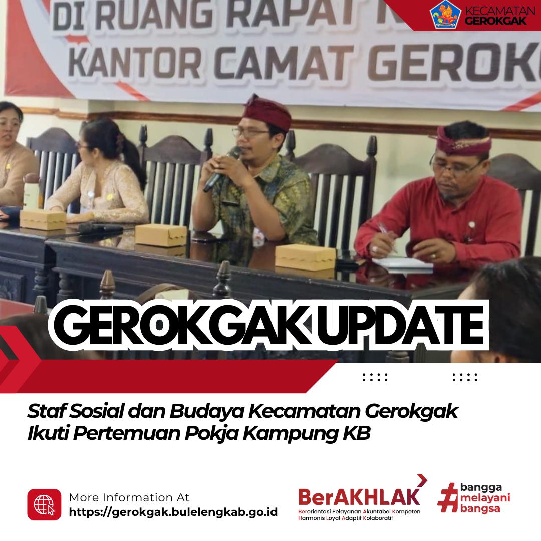 Gerokgak, Kamis 25 September 2025 – Staf Seksi Sosial dan Budaya Kecamatan Gerokgak menghadiri kegiatan Pertemuan Kelompok Kerja (Pokja) Kampung KB yang dilaksanakan di ruang rapat Niti Sabha Kantor Camat Gerokgak. Pertemuan ini diikuti oleh Pokja KKB dari tujuh desa, yaitu Desa Sumberklampok, Pejarakan, Penyabangan, Gerokgak, Patas, Pengulon, dan Celukanbawang.