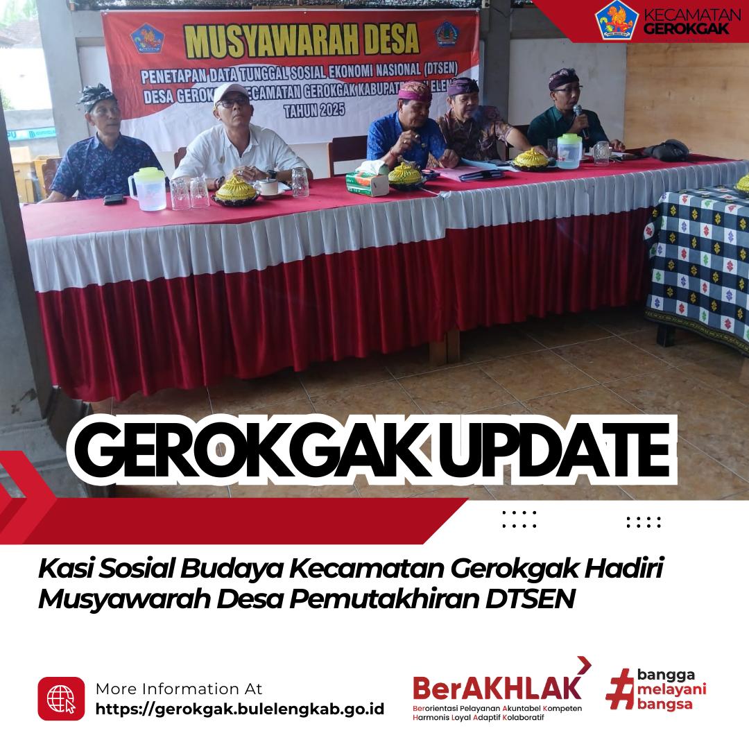 Gerokgak, 18 Desember 2025 — Kepala Seksi Sosial dan Budaya Kecamatan Gerokgak, I Made Suardana bersama staf, menghadiri Musyawarah Desa (Musdes) terkait Pemutakhiran Data Tunggal Sosial Ekonomi Nasional (DTSEN) yang dilaksanakan di Aula Kantor Desa Gerokgak.