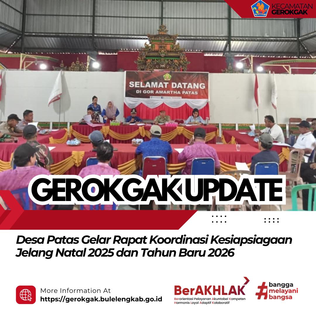Patas, Selasa (23/12/2025) — Pemerintah Desa Patas melaksanakan Rapat Koordinasi Kesiapsiagaan dalam rangka menciptakan situasi yang kondusif serta mengantisipasi gangguan ketertiban umum dan ketentraman masyarakat menjelang perayaan Natal Tahun 2025 dan Tahun Baru 2026. Kegiatan ini dilaksanakan di GOR Amartha Patas dan dipimpin langsung oleh Perbekel Patas, I Made Suparsa.