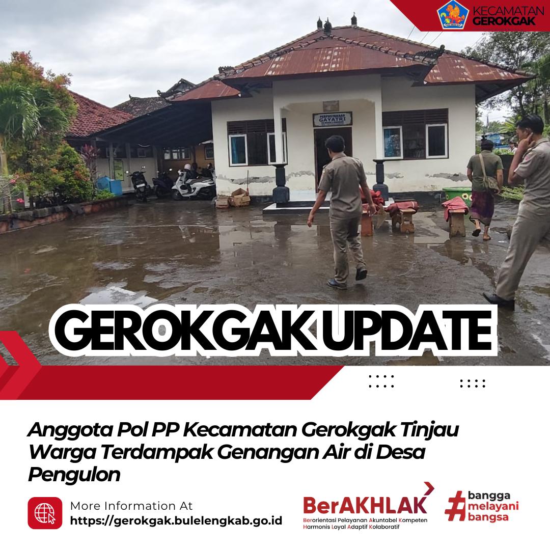Gerokgak, 26 Februari 2026 – Anggota Satuan Polisi Pamong Praja (Pol PP) Kecamatan Gerokgak melaksanakan peninjauan langsung ke lokasi warga terdampak genangan air akibat hujan deras yang terjadi pada Selasa, 25 Februari 2026 sekitar pukul 14.00 Wita di Desa Pengulon.