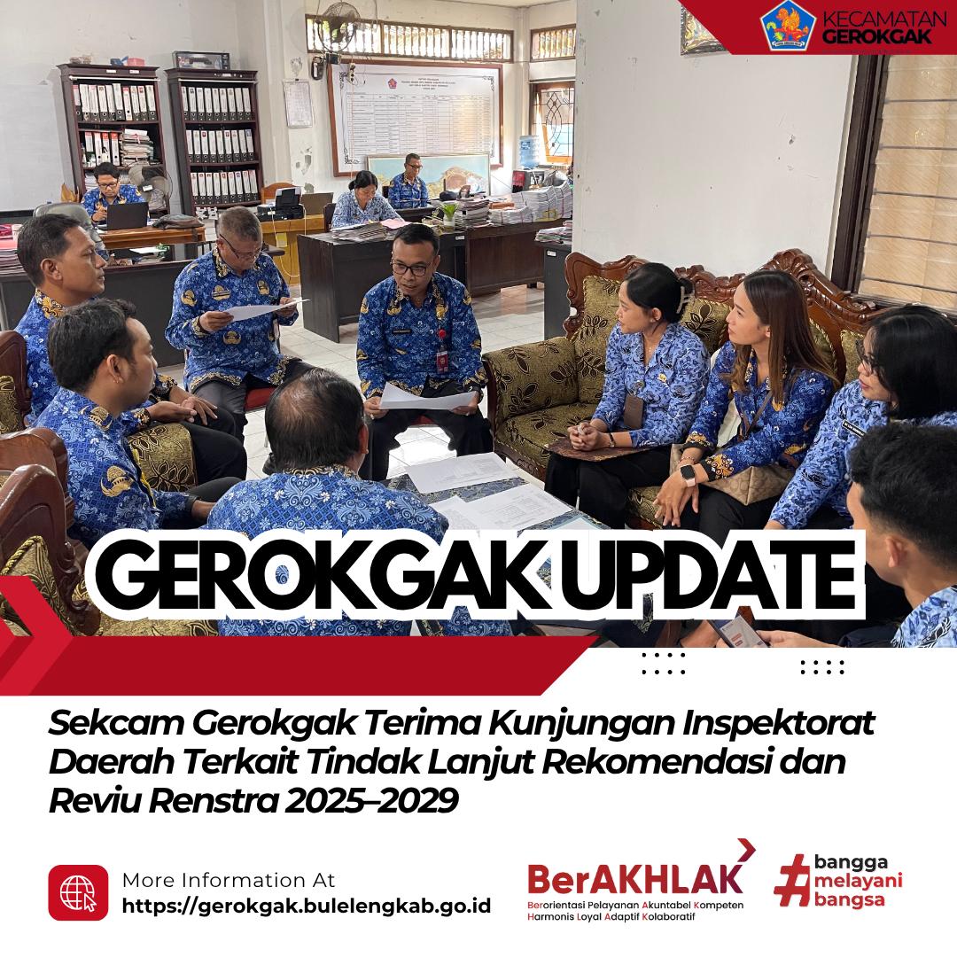 Kunjungan tersebut difokuskan pada Koordinasi Atas Rencana Aksi Tindak Lanjut Rekomendasi Inspektorat Daerah Kabupaten Buleleng berdasarkan Laporan Hasil Monitoring dan Evaluasi Atas Penerapan Disiplin Pegawai pada Kecamatan Gerokgak. Tim Inspektorat memberikan penjelasan serta pendalaman terkait langkah-langkah yang perlu ditempuh untuk memastikan seluruh rekomendasi dapat ditindaklanjuti secara tepat dan sesuai ketentuan.