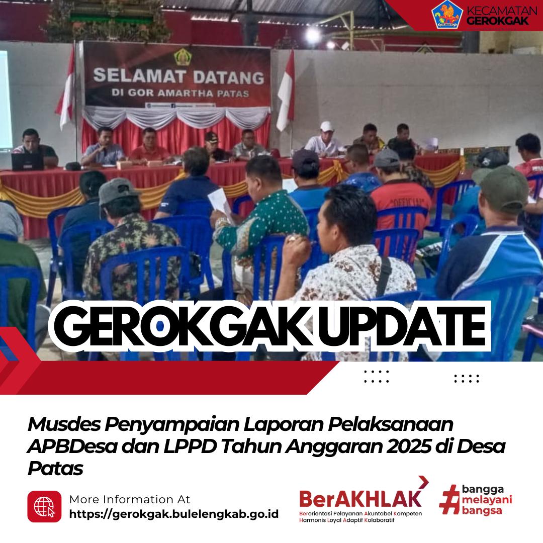 Patas, 27 Februari 2026 – Kasi Pemerintahan Kecamatan Gerokgak menghadiri kegiatan Musyawarah Desa (Musdes) dalam rangka penyampaian Laporan Pelaksanaan APBDesa dan Laporan Penyelenggaraan Pemerintahan Desa Tahun Anggaran 2025 di Desa Patas.