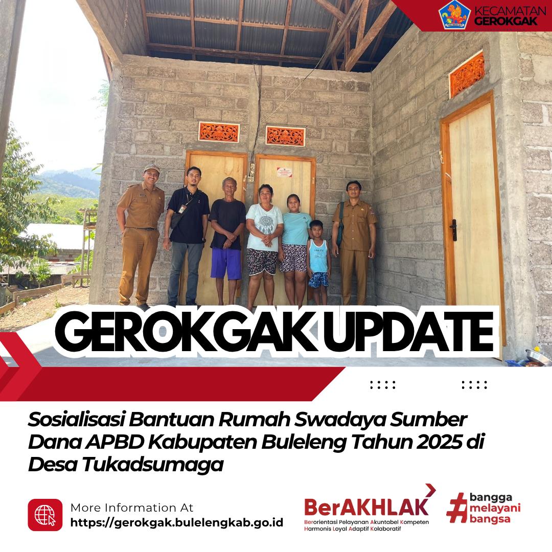 Tukadsumaga, Senin (13/10/2025) — Bertempat di Aula Kantor Desa Tukadsumaga, dilaksanakan kegiatan Sosialisasi Bantuan Rumah Swadaya yang bersumber dari Anggaran Pendapatan dan Belanja Daerah (APBD) Kabupaten Buleleng Tahun Anggaran 2025. Kegiatan ini turut dihadiri oleh staf Seksi Pembangunan Kecamatan Gerokgak, perwakilan dari Dinas Perumahan, Kawasan Permukiman dan Pertanahan (Perkimta) Kabupaten Buleleng, Perbekel Tukadsumaga, serta Kelian Banjar Dinas setempat.
