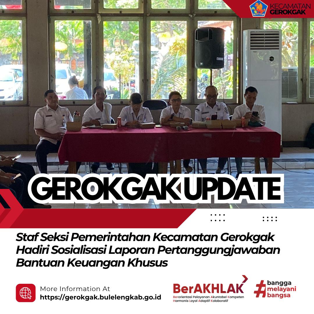 Singaraja, 12 November 2025 — Staf Seksi Pemerintahan Kecamatan Gerokgak menghadiri kegiatan Sosialisasi Laporan Pertanggungjawaban (LPJ) Bantuan Keuangan Khusus (BKK) yang diselenggarakan di Gedung Wanita Laksmi Graha, Singaraja.