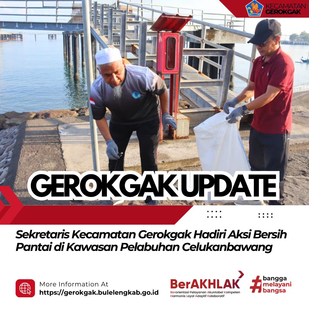 Celukanbawang – Sekretaris Kecamatan Gerokgak bersama staf Kecamatan Gerokgak menghadiri kegiatan bersih-bersih pantai yang dilaksanakan di kawasan Pelabuhan Celukanbawang pada Kamis, 12 Februari 2026.