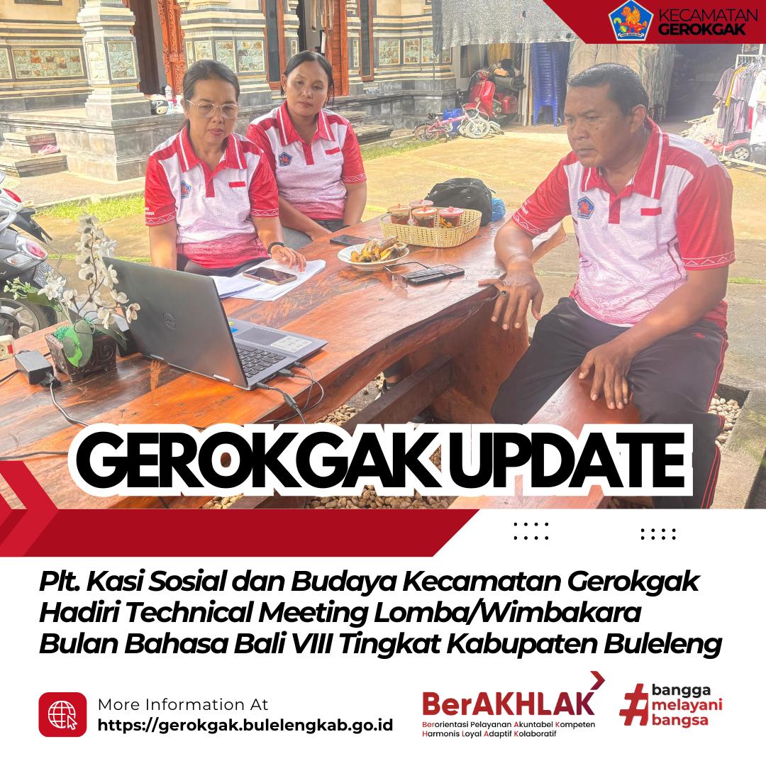 Gerokgak – Plt. Kepala Seksi Sosial dan Budaya Kecamatan Gerokgak, Ni Luh Manik, S.Sos., bersama staf mengikuti kegiatan Technical Meeting lomba/wimbakara serangkaian Bulan Bahasa Bali VIII Tahun 2026 tingkat Kabupaten Buleleng, yang diselenggarakan pada Kamis, 5 Februari 2026.