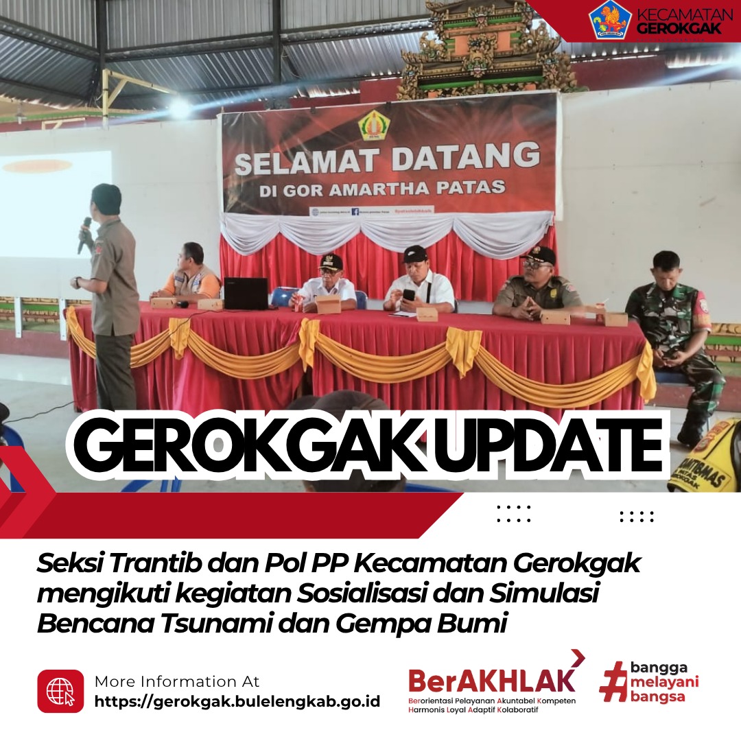 Rabu, 22 Oktober 2025 — Staf Seksi Trantib dan Pol PP Kecamatan Gerokgak mengikuti kegiatan Sosialisasi dan Simulasi Bencana Tsunami dan Gempa Bumi yang dilaksanakan di Desa Patas. Kegiatan ini dibuka secara resmi oleh Perbekel Desa Patas dan menghadirkan narasumber dari BPBD Kabupaten Buleleng, Bapak Gede Mahendara.
