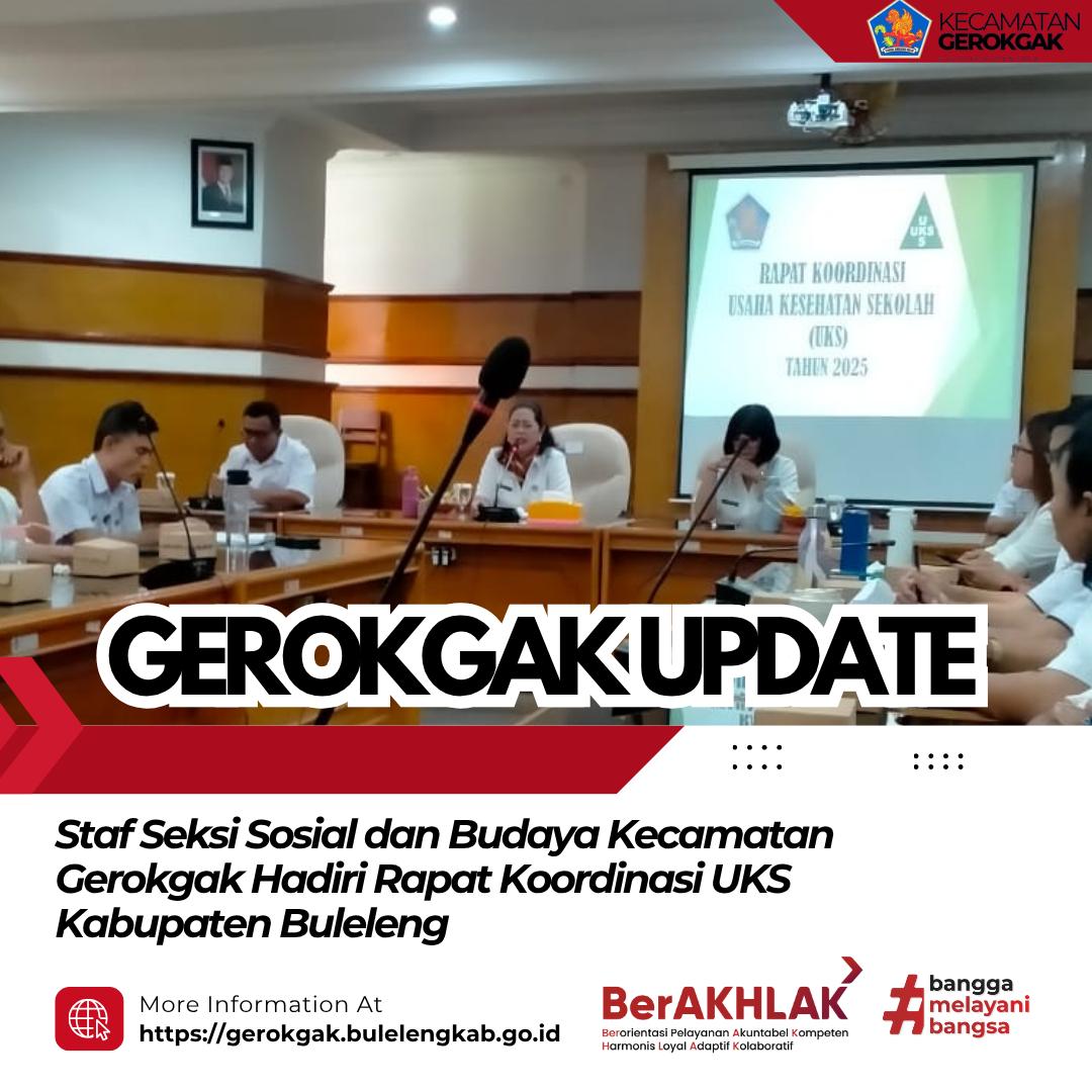 Buleleng, 29 Oktober 2025 — Staf Seksi Sosial dan Budaya Kecamatan Gerokgak, Ni Luh Manik, S.Sos, menghadiri Rapat Koordinasi Usaha Kesehatan Sekolah (UKS) yang bertempat di Ruang Rapat Unit IV Setda Kabupaten Buleleng.