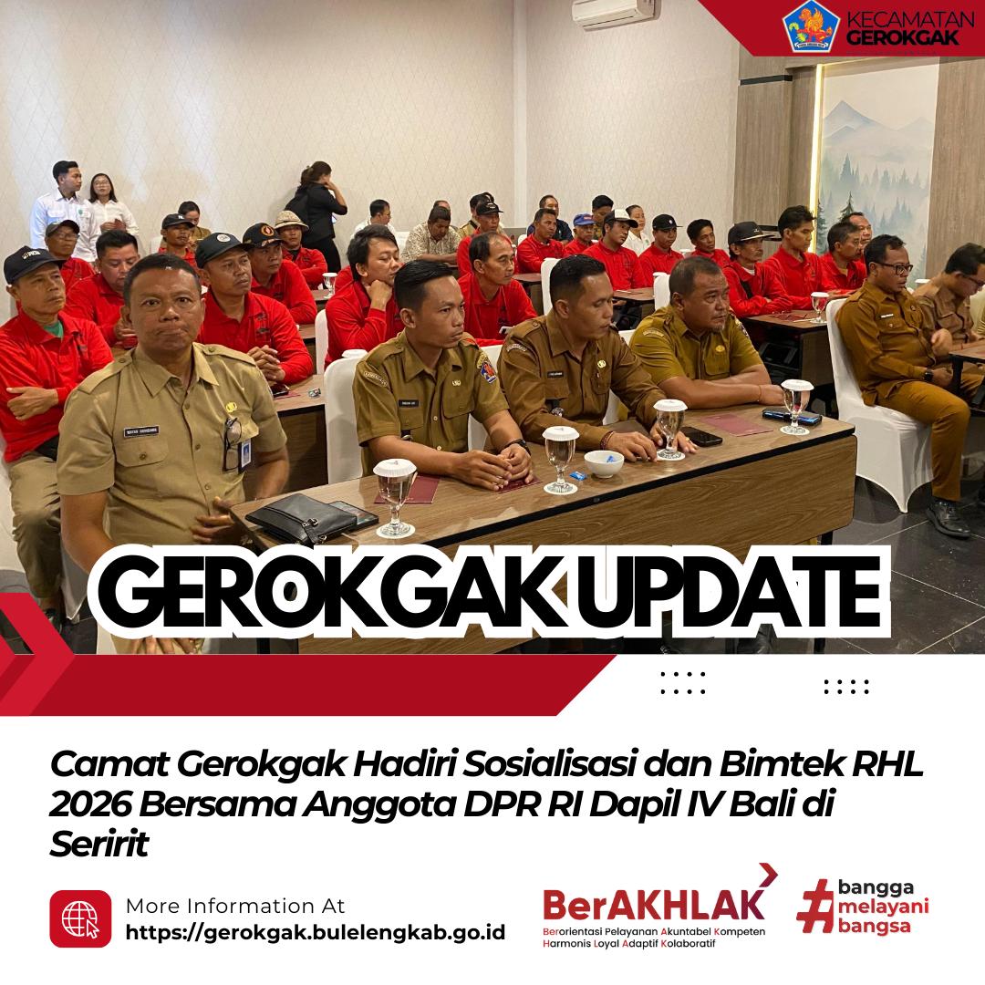 Seririt – Camat Gerokgak menghadiri kegiatan Sosialisasi dan Bimbingan Teknis (Bimtek) Pelaksanaan Rehabilitasi Hutan dan Lahan (RHL) Tahun 2026 bersama Anggota DPR RI Daerah Pemilihan (Dapil) IV Bali. Kegiatan tersebut berlangsung di Hotel Azana Seririt pada Minggu, 2 Maret 2026.