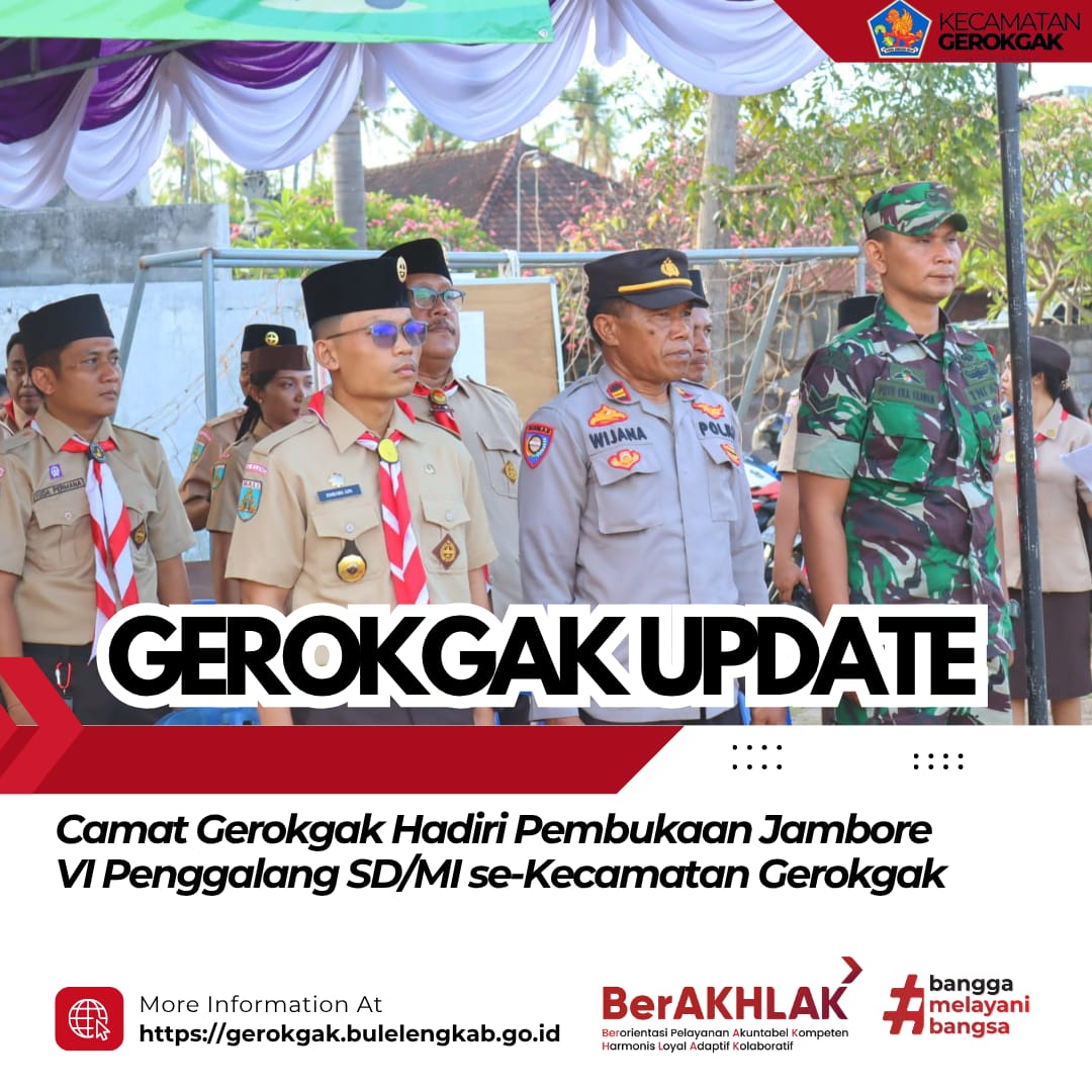 Camat Gerokgak dalam kesempatan tersebut menyampaikan apresiasi atas terselenggaranya kegiatan ini dan berharap agar seluruh peserta dapat mengikuti kegiatan jambore dengan penuh semangat, menjaga kekompakan, serta menanamkan nilai-nilai dasar kepramukaan dalam kehidupan sehari-hari.