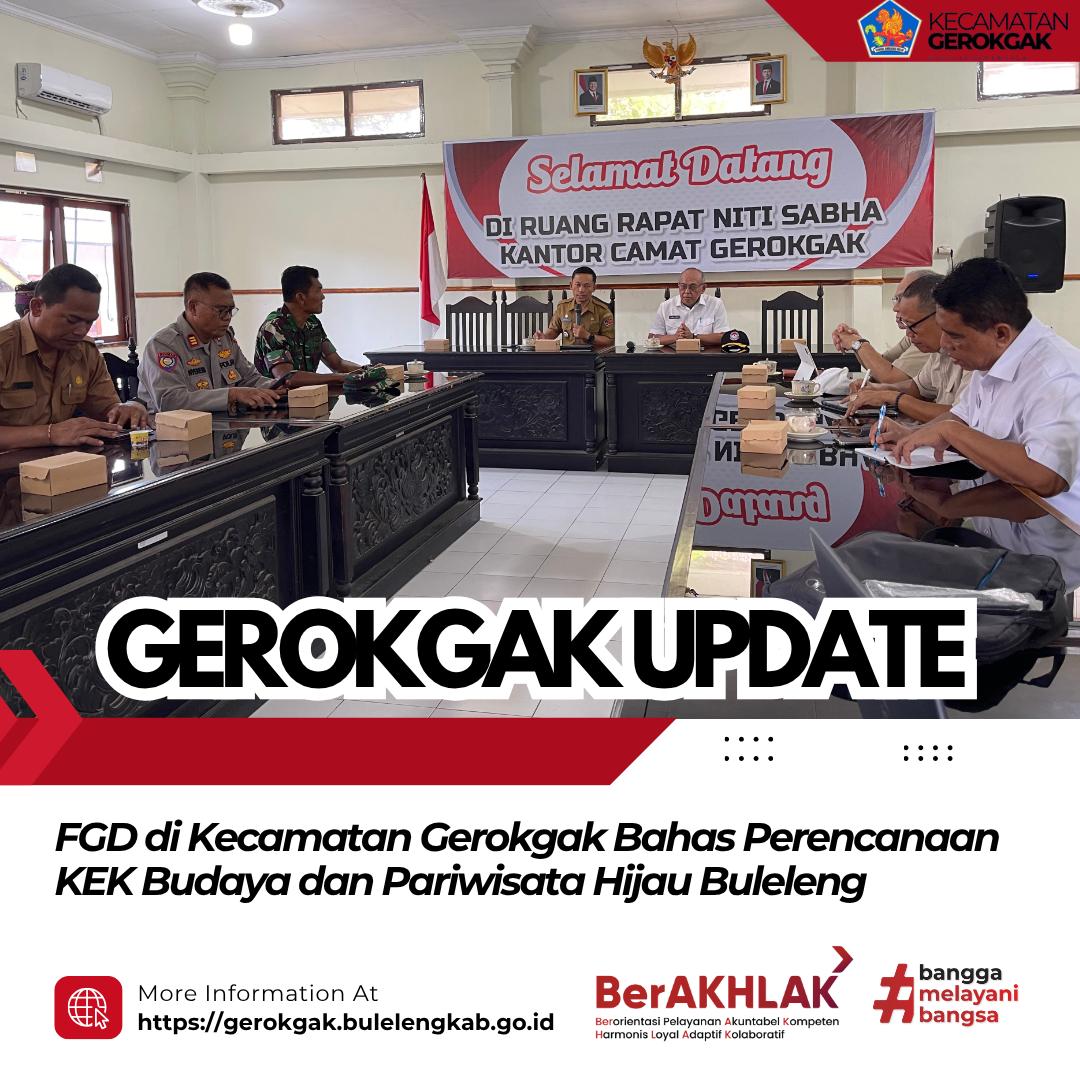 Dalam sambutannya, Camat Gerokgak menyampaikan apresiasi atas kepercayaan yang diberikan kepada Kecamatan Gerokgak sebagai lokasi pelaksanaan FGD. Ia menegaskan bahwa Gerokgak memiliki potensi besar dalam pengembangan sektor pariwisata dan budaya yang dapat dikembangkan secara berkelanjutan.