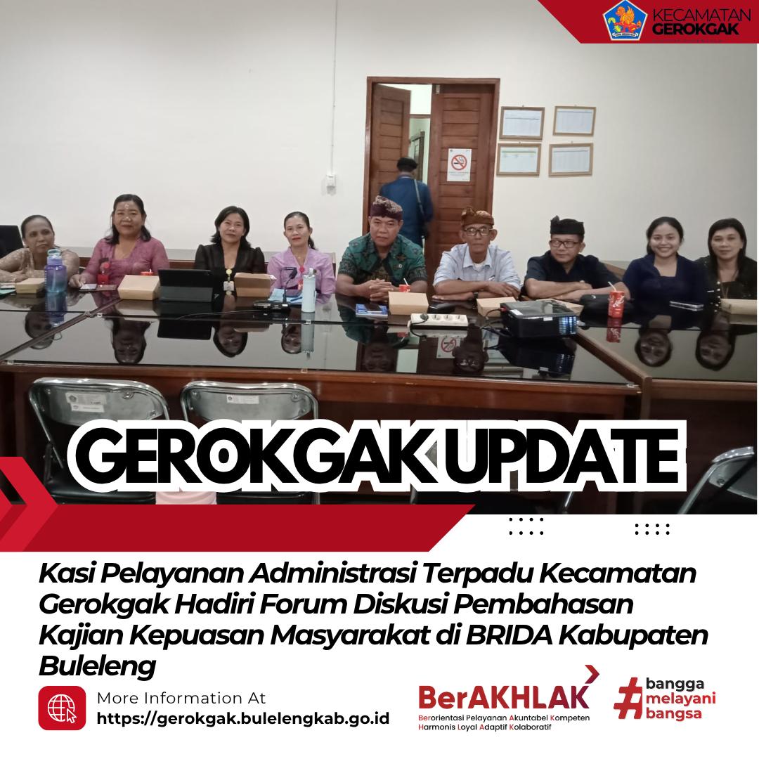 Buleleng, 13 November 2025 — Kasi Pelayanan Administrasi Terpadu Kecamatan Gerokgak menghadiri kegiatan Forum Diskusi Pembahasan Laporan Antara Penyusunan Kajian Kepuasan Masyarakat terhadap Kinerja Pemerintah Kabupaten Buleleng, yang berlangsung di Ruang Rapat Badan Riset dan Inovasi Daerah (BRIDA) Kabupaten Buleleng, Kamis (13/11).