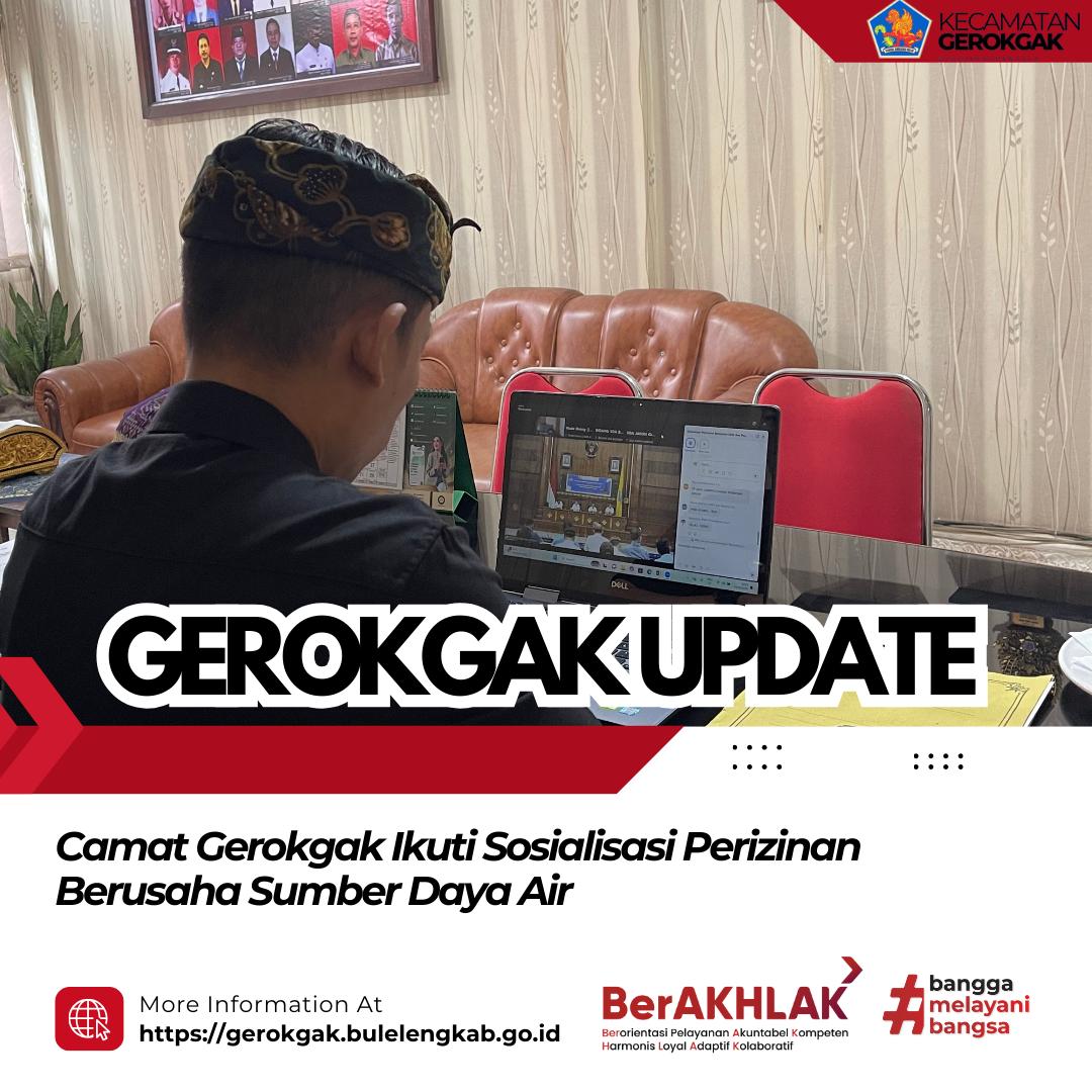 Gerokgak – Camat Gerokgak, I Gd Arya Rimbawa Giri, S.IP., M.AP mengikuti kegiatan Sosialisasi Perizinan Berusaha Sumber Daya Air dan Persetujuan Penggunaan Sumber Daya Air di Wilayah Sungai Bali Penida yang dilaksanakan secara daring melalui Zoom Meeting pada Kamis, 5 Maret 2026.
