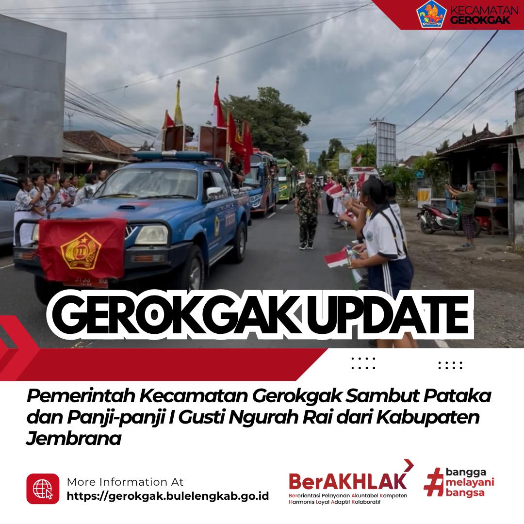 Gerokgak, 12 November 2025 – Jajaran Pemerintah Kecamatan Gerokgak bersama unsur Forkopimcam, TNI, Polri, Pemuda Panca Marga, serta para siswa dari SMP Negeri 1 Gerokgak, SMK PGRI Gerokgak, dan SMK Istiqal Patas turut ambil bagian dalam penyambutan Pataka dan Panji-panji I Gusti Ngurah Rai yang dibawa dari Kabupaten Jembrana, Rabu (12/11).