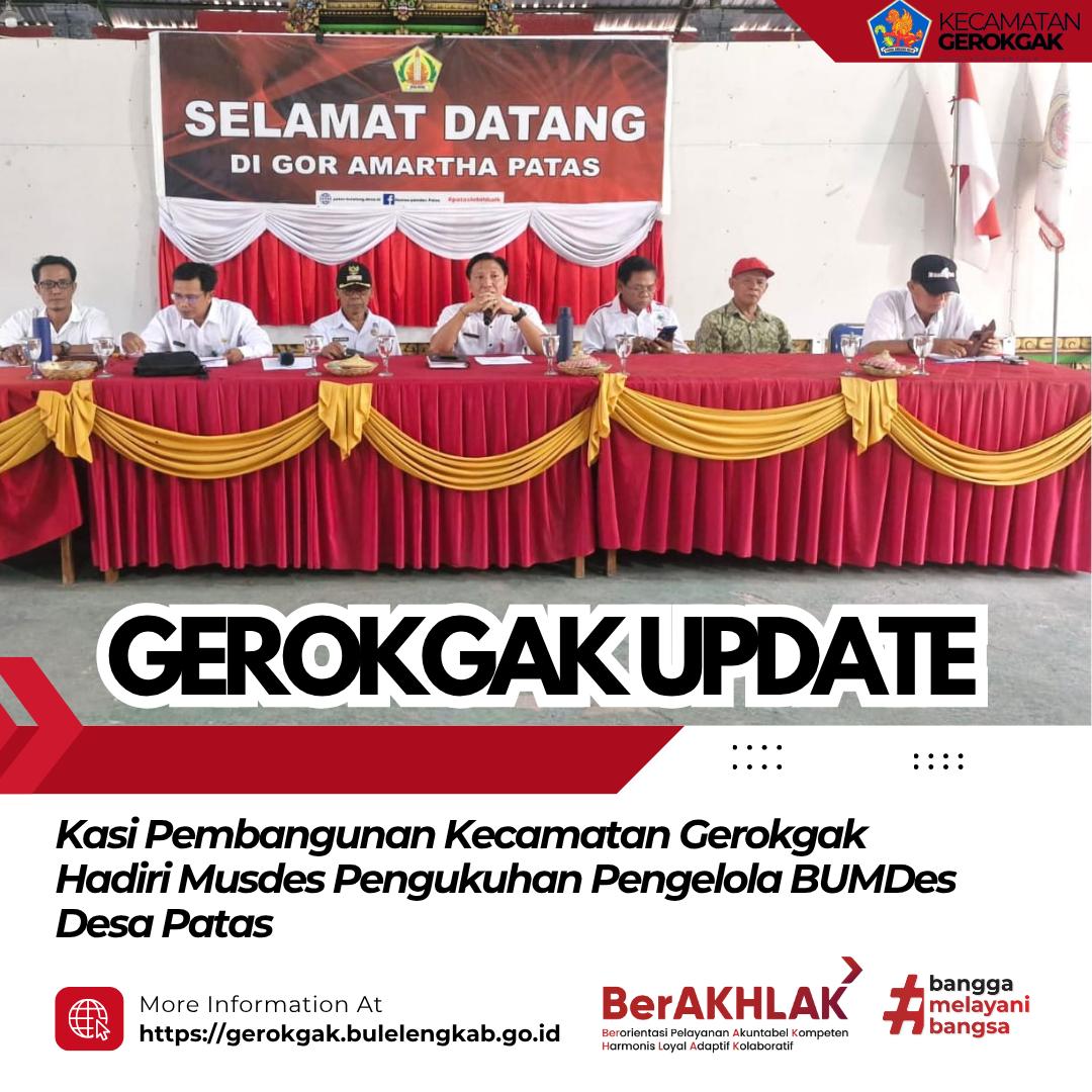 Patas, 29 Oktober 2025 — Kasi Pembangunan Kecamatan Gerokgak Made Pasek Widiana, S.Si menghadiri kegiatan Musyawarah Desa (Musdes) Pengukuhan Pengelola Badan Usaha Milik Desa (BUMDes) Desa Patas, sekaligus Sosialisasi Bidang Kerja BUMDes dan Koperasi Desa Merah Putih (Kopdes MP) yang disampaikan oleh Pendamping Desa Kecamatan Gerokgak.
