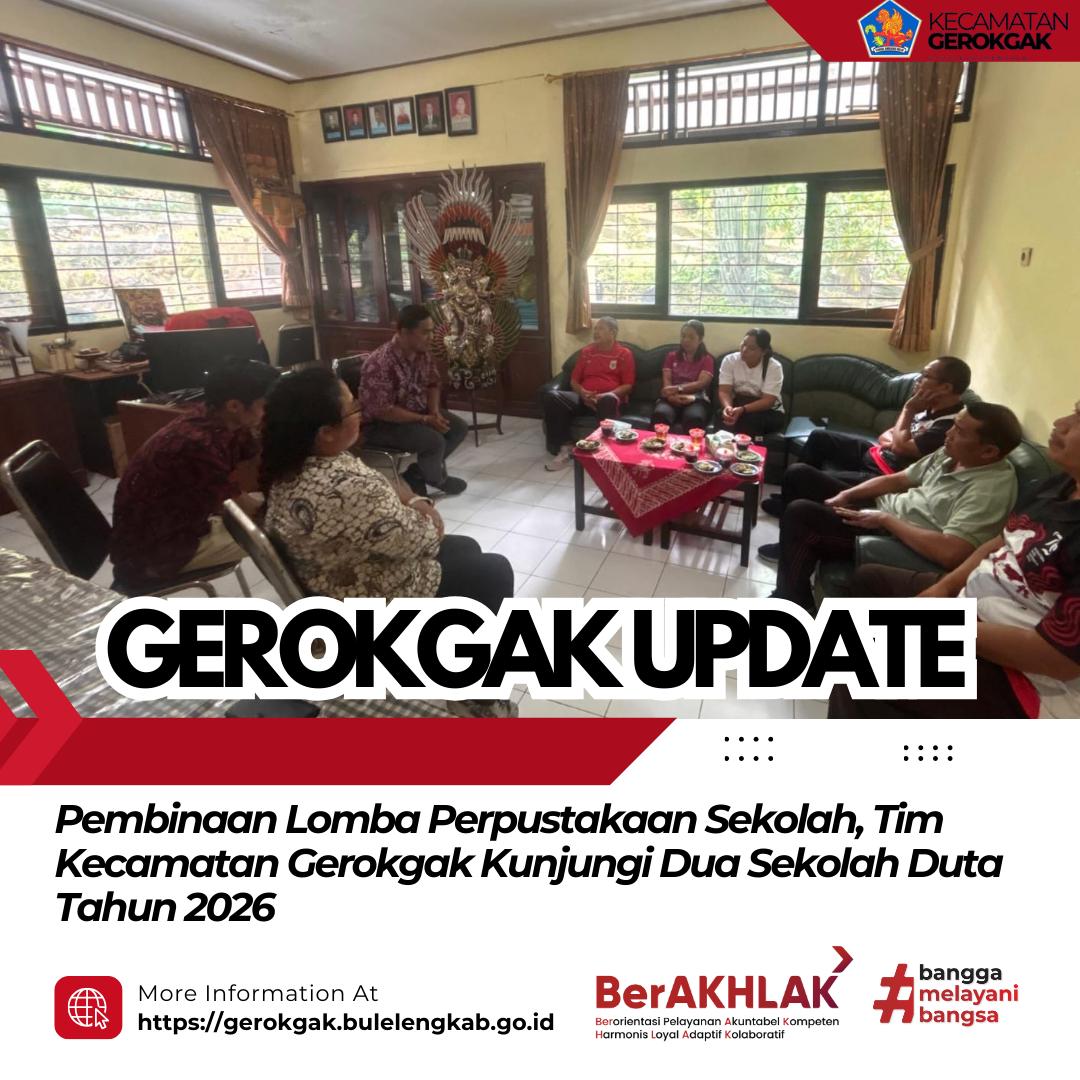 Tim pembina Kecamatan Gerokgak terdiri dari unsur staf Seksi Sosial dan Budaya Kecamatan Gerokgak serta Koordinator Wilayah Pendidikan, Pemuda, dan Olahraga Kecamatan Gerokgak. Kehadiran tim ini merupakan wujud komitmen dalam mendukung peningkatan mutu literasi serta pengelolaan perpustakaan sekolah sebagai pusat pembelajaran yang aktif, kreatif, dan menyenangkan.