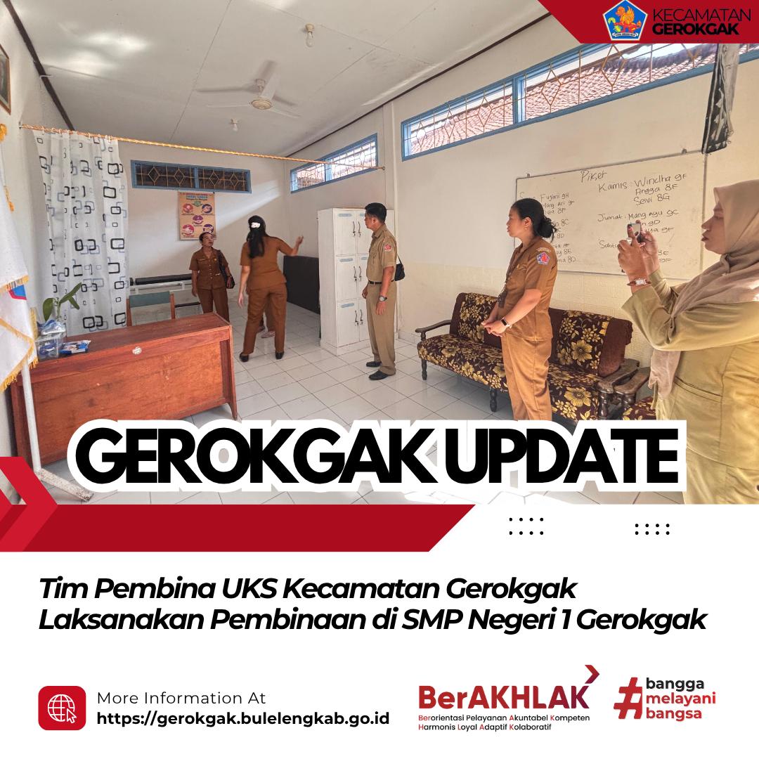 Pembinaan tersebut dihadiri oleh Tim Pembina UKS Kecamatan Gerokgak dari Seksi Sosial Budaya, Puskesmas Gerokgak I, serta Tim Pelaksana UKS SMP Negeri 1 Gerokgak.