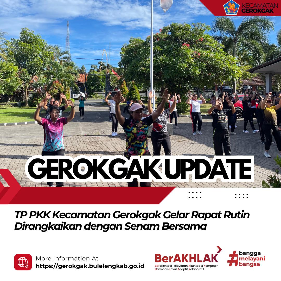 Gerokgak, Jumat, 5 Desember 2025 — Tim Penggerak PKK Kecamatan Gerokgak melaksanakan Rapat Rutin TP PKK se-Kecamatan Gerokgak yang dirangkaikan dengan kegiatan senam bersama. Kegiatan ini berlangsung di Kantor Camat Gerokgak dan diikuti oleh seluruh pengurus serta perwakilan TP PKK desa se-Kecamatan Gerokgak.