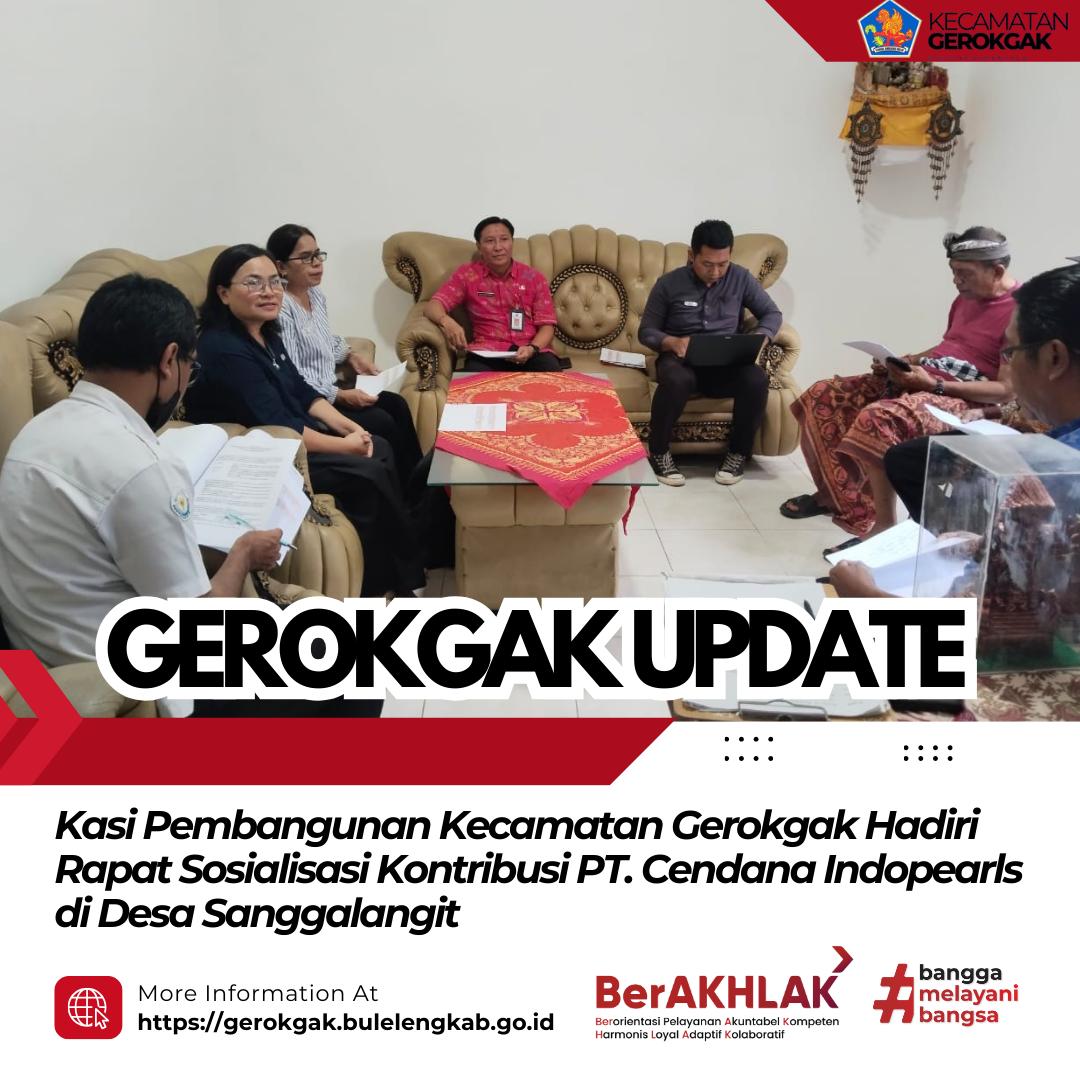 Sanggalangit, 2 Desember 2025 — Kasi Pembangunan Kecamatan Gerokgak, Made Pasek Widiana, S.Si., menghadiri Rapat Sosialisasi Kontribusi PT. Cendana Indopearls yang dilaksanakan di Desa Sanggalangit. Kegiatan ini digelar sebagai forum diskusi dan penyampaian informasi terkait kontribusi serta program Corporate Social Responsibility (CSR) perusahaan kepada Desa Sanggalangit, meliputi Desa Dinas, Desa Adat, dan dua kelompok nelayan.