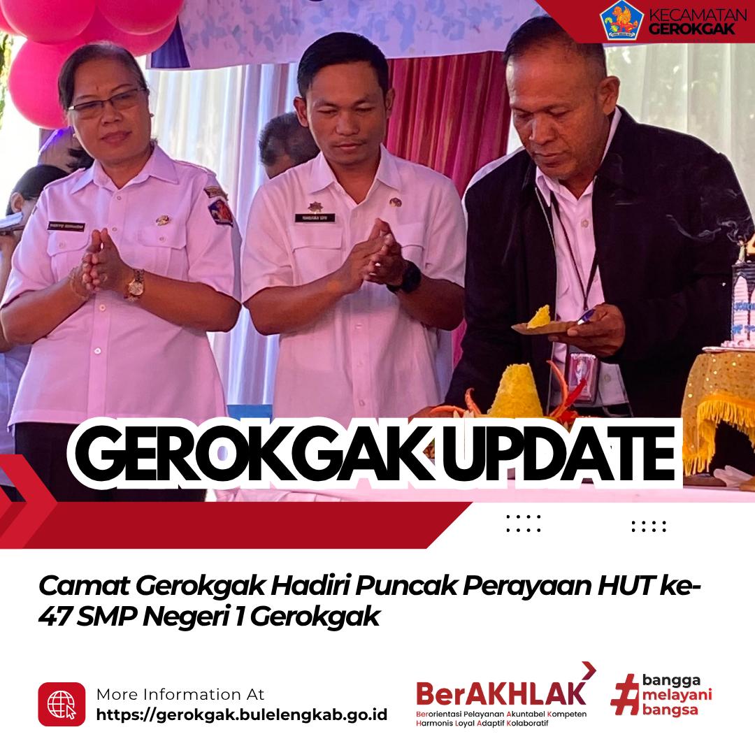 Gerokgak — Camat Gerokgak menghadiri kegiatan puncak perayaan Hari Ulang Tahun (HUT) ke-47 SMP Negeri 1 Gerokgak yang dilaksanakan di aula SMP Negeri 1 Gerokgak pada Rabu (1/4).