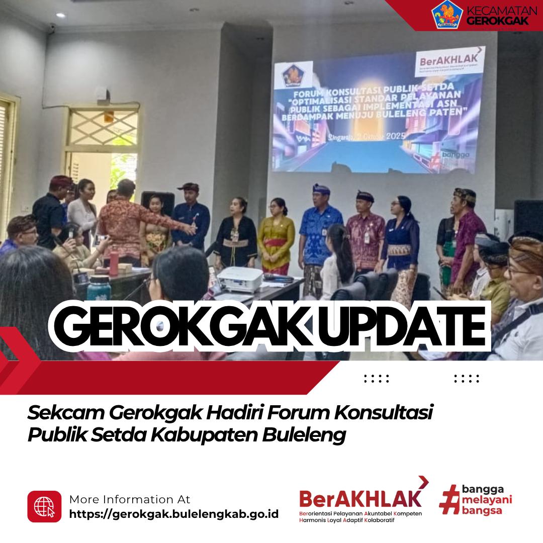 Buleleng, 2 Oktober 2025 – Sekretaris Camat Gerokgak, Putu Dony Sugiartha, S.H., menghadiri Forum Konsultasi Publik (FKP) yang diselenggarakan oleh Sekretariat Daerah Kabupaten Buleleng dengan tema “Optimalisasi Standar Pelayanan Publik sebagai Implementasi ASN Berdampak Menuju Buleleng PATEN”. Kegiatan ini berlangsung di Ruang Rapat Utama Bappeda Kabupaten Buleleng.