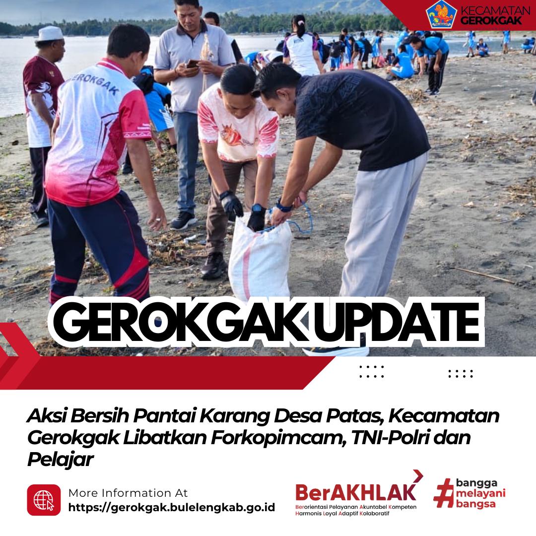 Setelah apel, kegiatan dilanjutkan dengan aksi bersih-bersih pantai yang dikoordinir oleh unsur Forkopimcam Gerokgak bersama Pemerintah Desa Patas, Prajuru Desa Adat Patas, masyarakat setempat, serta para siswa-siswi SMP Negeri 5 Gerokgak. Para peserta kegiatan secara gotong royong mengumpulkan sampah yang berada di sepanjang kawasan Pantai Karang Desa Patas.