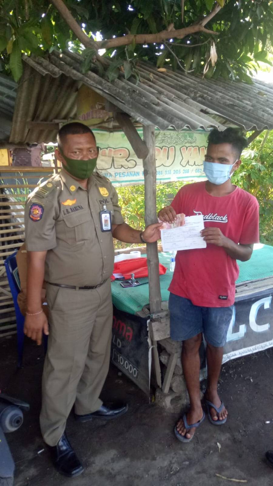 Terdata ada 3 orang pelanggar dalam pelaksanaan penerapan Peraturan Bupati Buleleng Nomor 41 Tahun 2020 kali ini. Pada pengarahannya (I Ketut Mastra Atmaja, S.Pd) menyampaikan kepada para pelanggar agar selalu menerapkan Protokol Kesehatan Covid-19 dimanapun dan kapanpun.