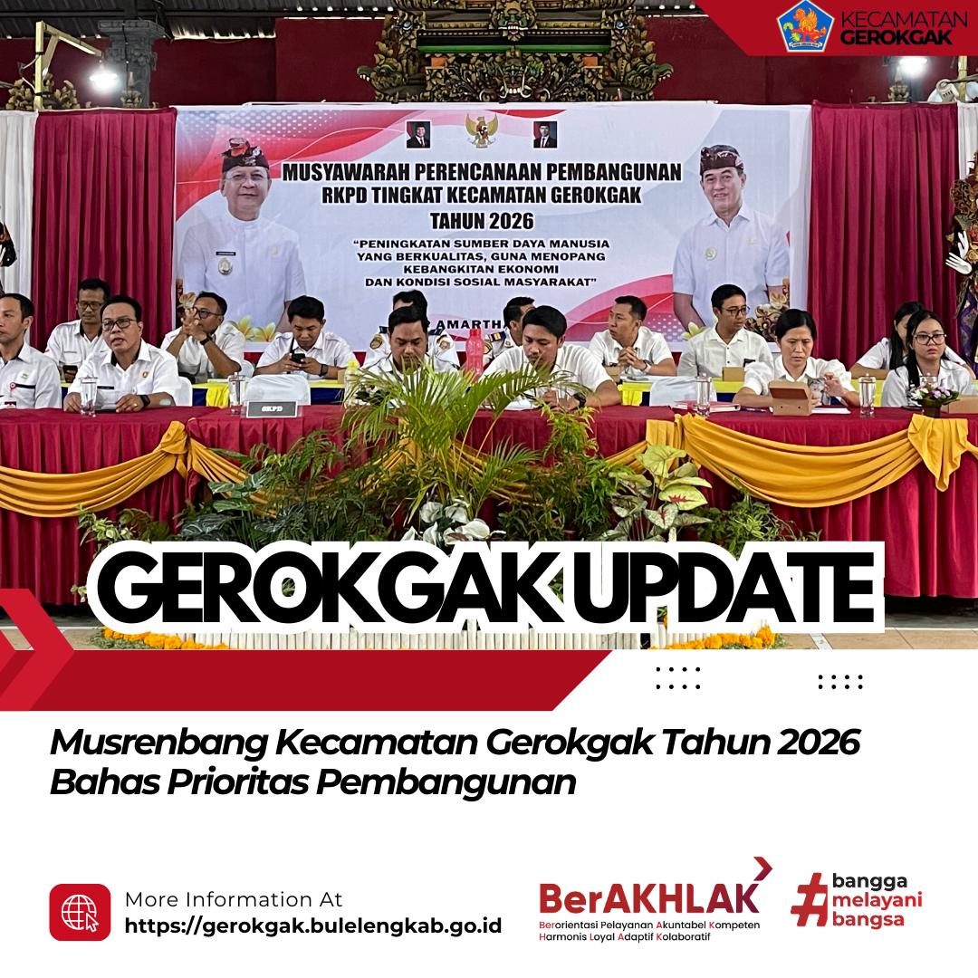 Gerokgak – Pemerintah Kecamatan Gerokgak melaksanakan Musyawarah Perencanaan Pembangunan (Musrenbang) Kecamatan Gerokgak Tahun 2026 sebagai bagian dari tahapan penyusunan rencana pembangunan daerah. Kegiatan ini dihadiri langsung oleh Camat Gerokgak I Gd Arya Rimbawa Giri, S.IP., M.AP., bersama seluruh staf, SKPD terkait, Perbekel se-Kecamatan Gerokgak beserta perangkat desa, serta undangan lainnya.