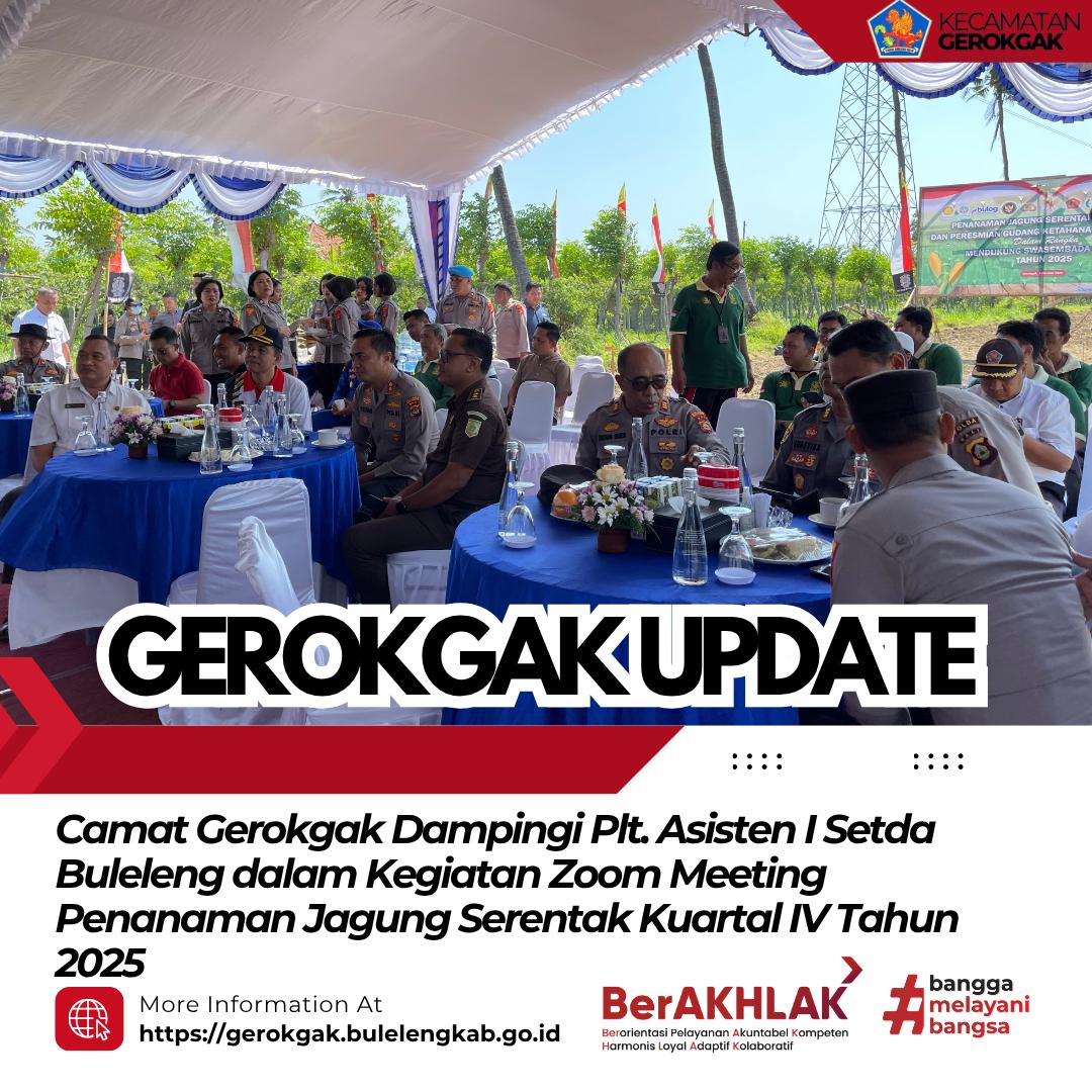 Gerokgak, 8 Oktober 2025 — Camat Gerokgak I Gd Arya Rimbawa Giri, S.IP., M.AP. mendampingi Plt. Asisten I Setda Buleleng Made Juartawan, S.STP., M.M. dalam kegiatan Zoom Meeting Penanaman Jagung Serentak Kuartal IV Tahun 2025 yang digelar oleh Kepolisian Resor Buleleng.
