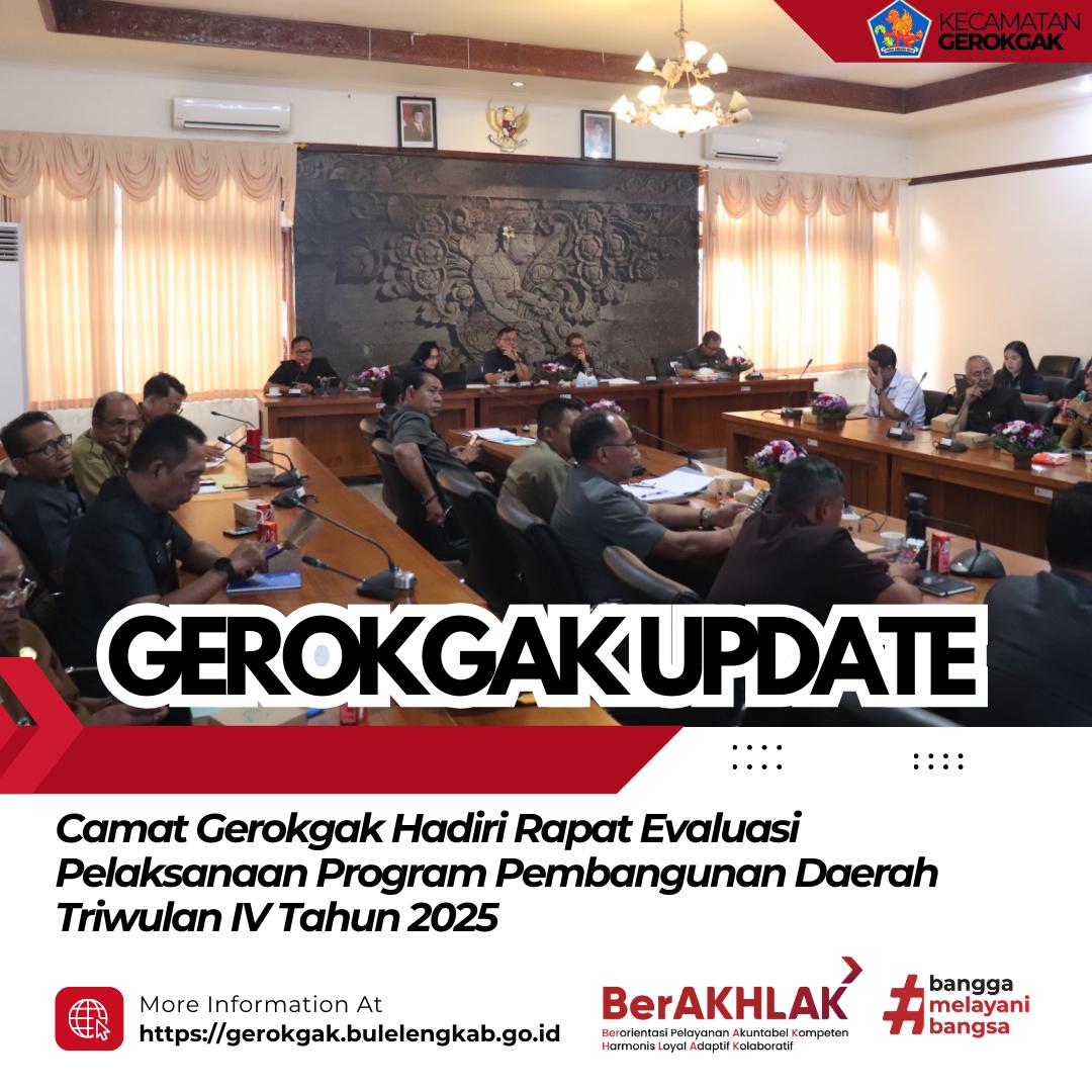 Singaraja, Senin (15/12/2025) — Camat Gerokgak, I Gd Arya Rimbawa Giri, S.IP., M.AP., menghadiri Rapat Evaluasi Pelaksanaan Program Kegiatan Pembangunan Daerah Triwulan IV Tahun 2025 yang diselenggarakan oleh Pemerintah Kabupaten Buleleng. Kegiatan ini berlangsung di Ruang Rapat Rumah Jabatan Bupati Buleleng.