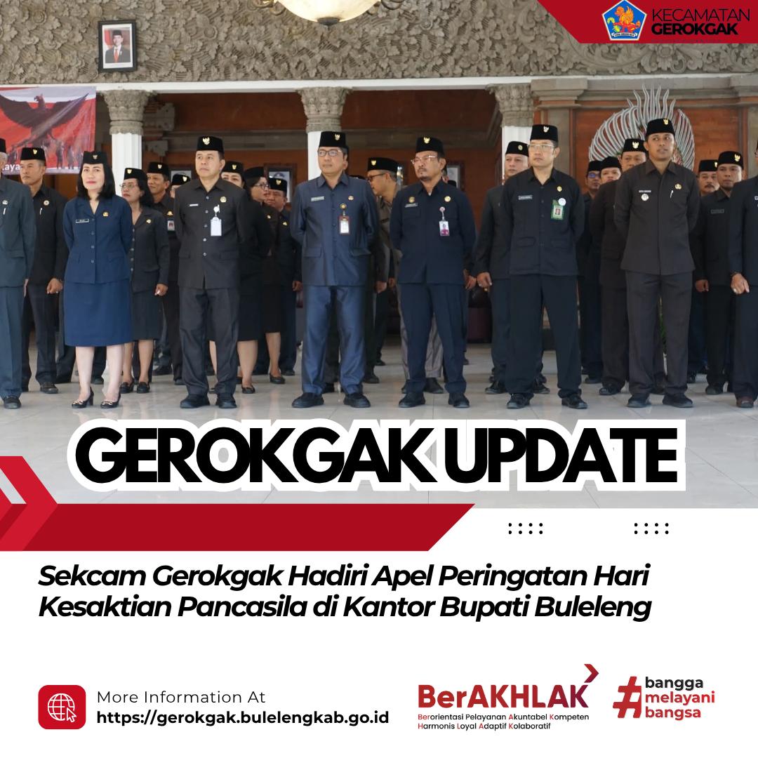 Rabu, 1 Oktober 2025, Sekretaris Camat (Sekcam) Gerokgak, Putu Dony Sugiartha, S.H., menghadiri Apel Peringatan Hari Kesaktian Pancasila yang dilaksanakan di Kantor Bupati Buleleng.