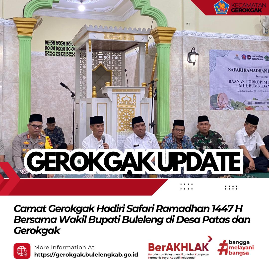 Gerokgak, 4 Maret 2026 – Camat Gerokgak menghadiri kegiatan Safari Ramadhan 1447 Hijriah/2026 Masehi yang dilaksanakan di Masjid Ar-Rahman Desa Patas dan Masjid Taufik Hidayah Desa Gerokgak, Kecamatan Gerokgak, Kabupaten Buleleng.