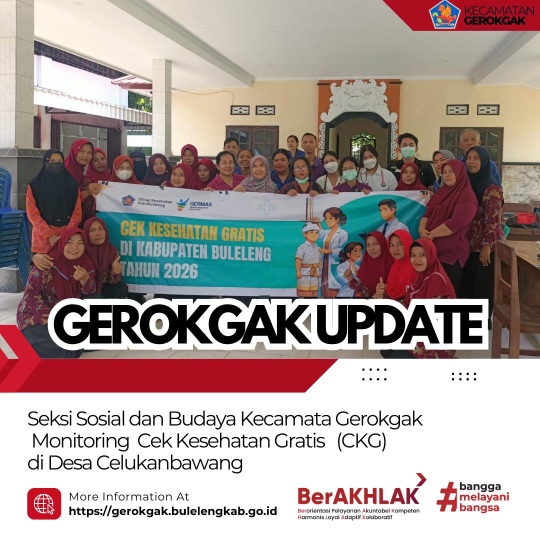 Selasa, 10 Maret 2026, Staf Sosial Budaya Kecamatan Gerokgak melaksanakan monitoring kegiatan Cek Kesehatan Gratis (CKG) yang berlangsung di Balai Banjar Dinas Celukanbawang, Desa Celukanbawang.