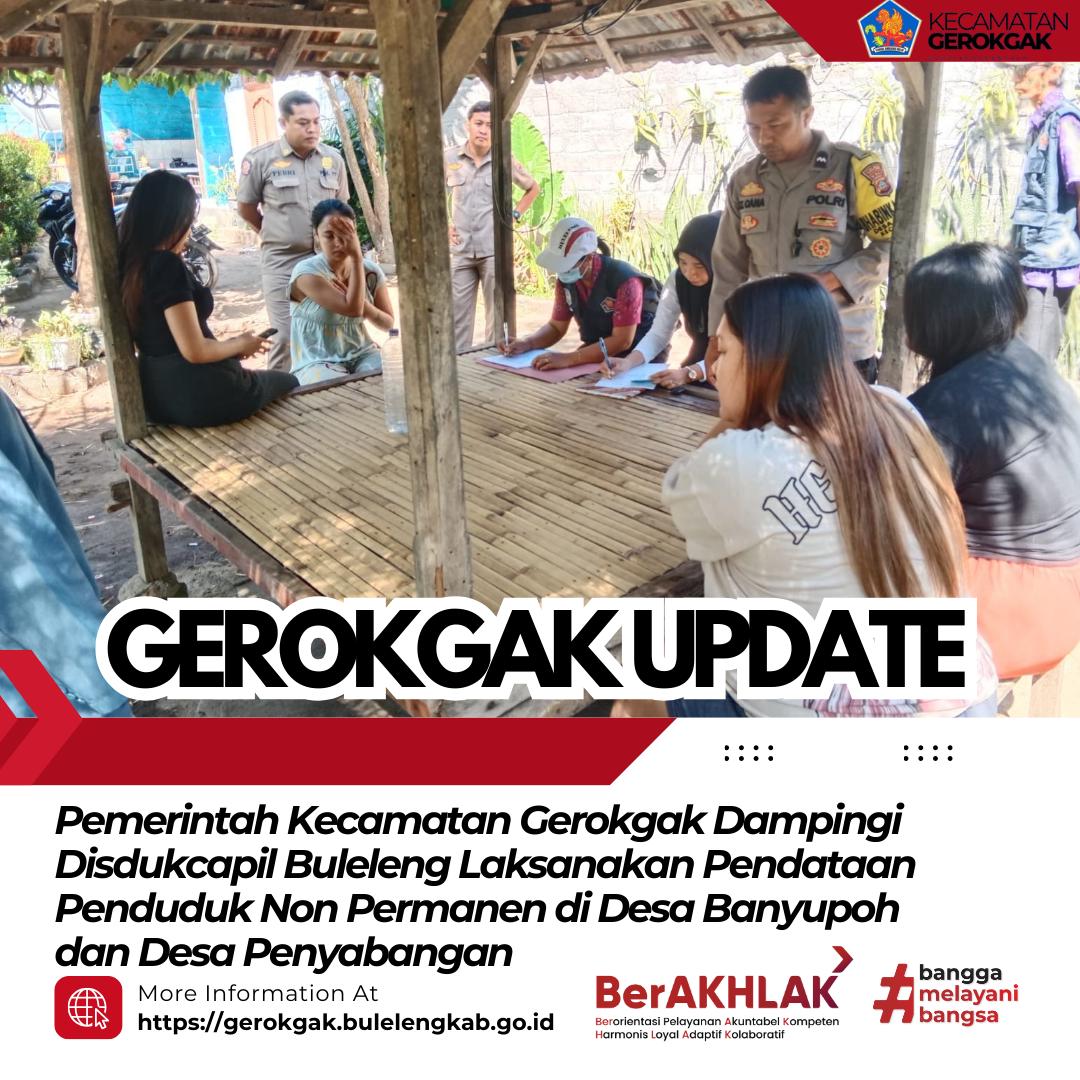 Gerokgak, Kamis 25 September 2025 – Pemerintah Kecamatan Gerokgak bersama Tim dari Dinas Kependudukan dan Pencatatan Sipil (Disdukcapil) Kabupaten Buleleng melaksanakan kegiatan pendampingan pendataan penduduk non permanen di dua desa, yaitu Desa Banyupoh pada pukul 08.30 WITA dan Desa Penyabangan pada pukul 13.00 WITA.