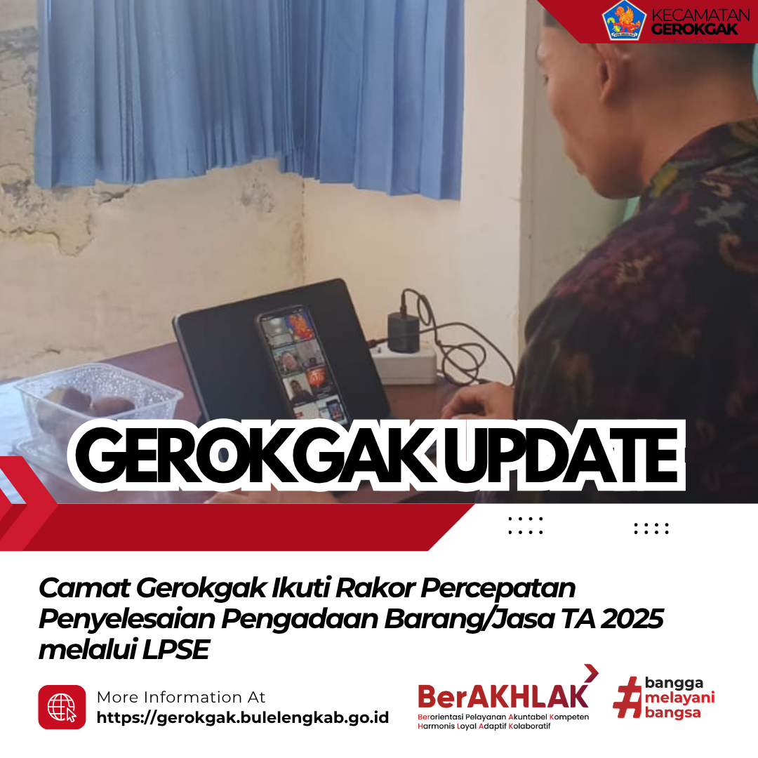 Gerokgak, 24 April 2026 — Camat Gerokgak bersama Kasubbag Perencanaan dan staf mengikuti rapat koordinasi penyelesaian pengadaan barang/jasa Tahun Anggaran 2025 melalui sistem LPSE yang dilaksanakan secara daring via Zoom Meeting.
