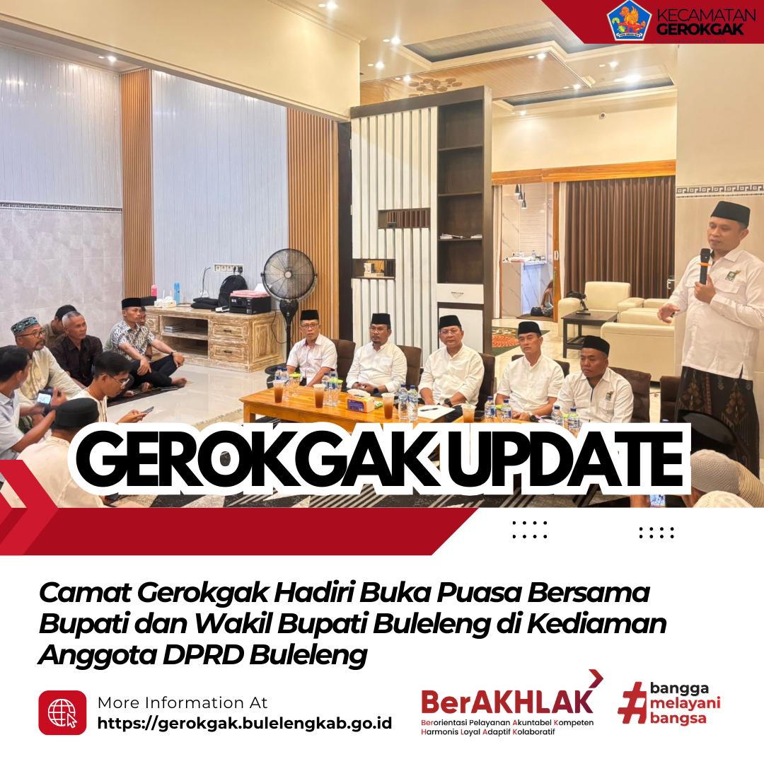 Kegiatan kemudian dilanjutkan dengan buka puasa bersama yang berlangsung dalam suasana hangat, penuh kebersamaan, serta mempererat tali silaturahmi antara pemerintah daerah, anggota legislatif, dan masyarakat di wilayah Kecamatan Gerokgak.