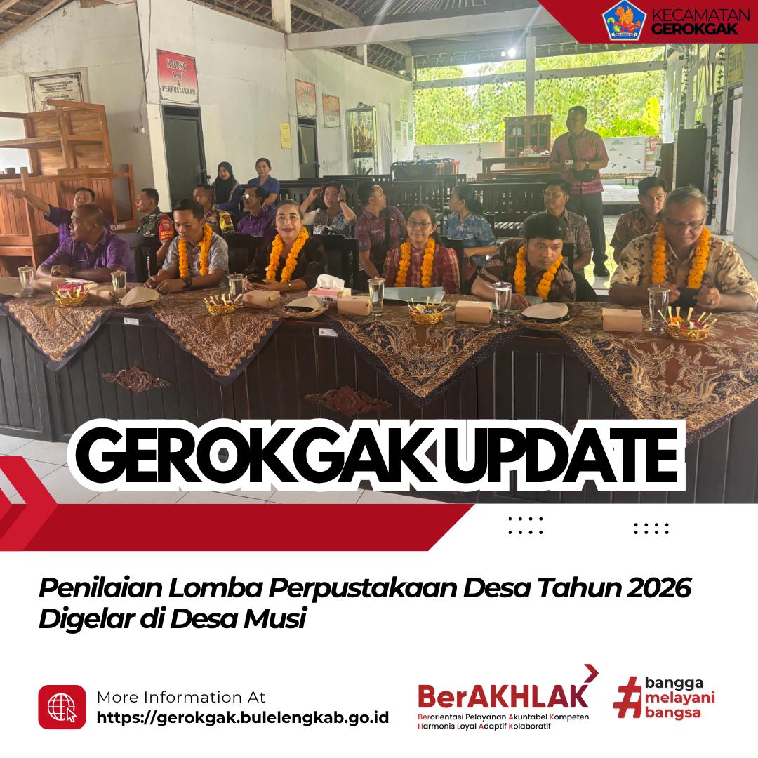 Gerokgak, 21 April 2026 — Penilaian Lomba Perpustakaan Desa Tahun 2026 dilaksanakan di Perpustakaan Sekar Pucuk, Desa Musi, Kecamatan Gerokgak. Kegiatan ini menjadi bagian dari upaya peningkatan kualitas pengelolaan perpustakaan desa sebagai pusat literasi dan pemberdayaan masyarakat.