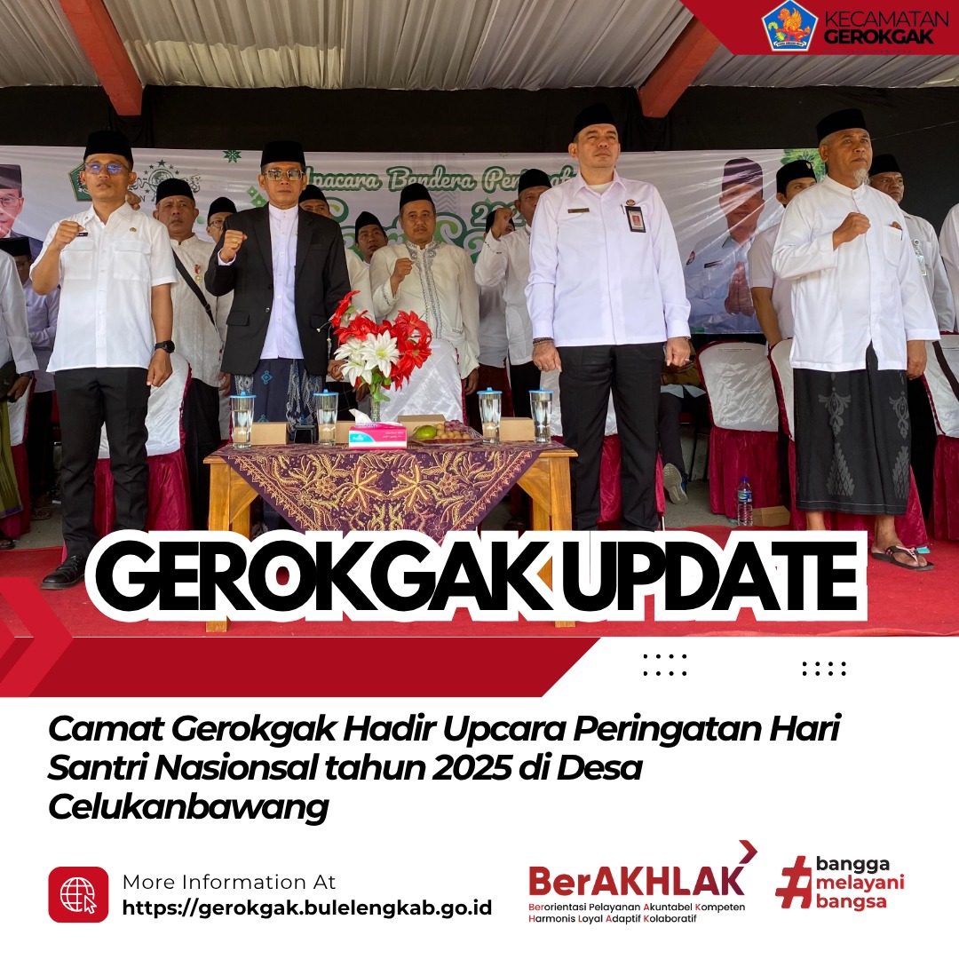 Celukanbawang, 22 Oktober 2025 — Camat Gerokgak I Gd Arya Rimbawa Giri, S. IP.,M.AP. menghadiri upacara peringatan Hari Santri Nasional yang digelar di Lapangan Desa Celukanbawang, Kecamatan Gerokgak. Kegiatan berlangsung khidmat dan penuh semangat.